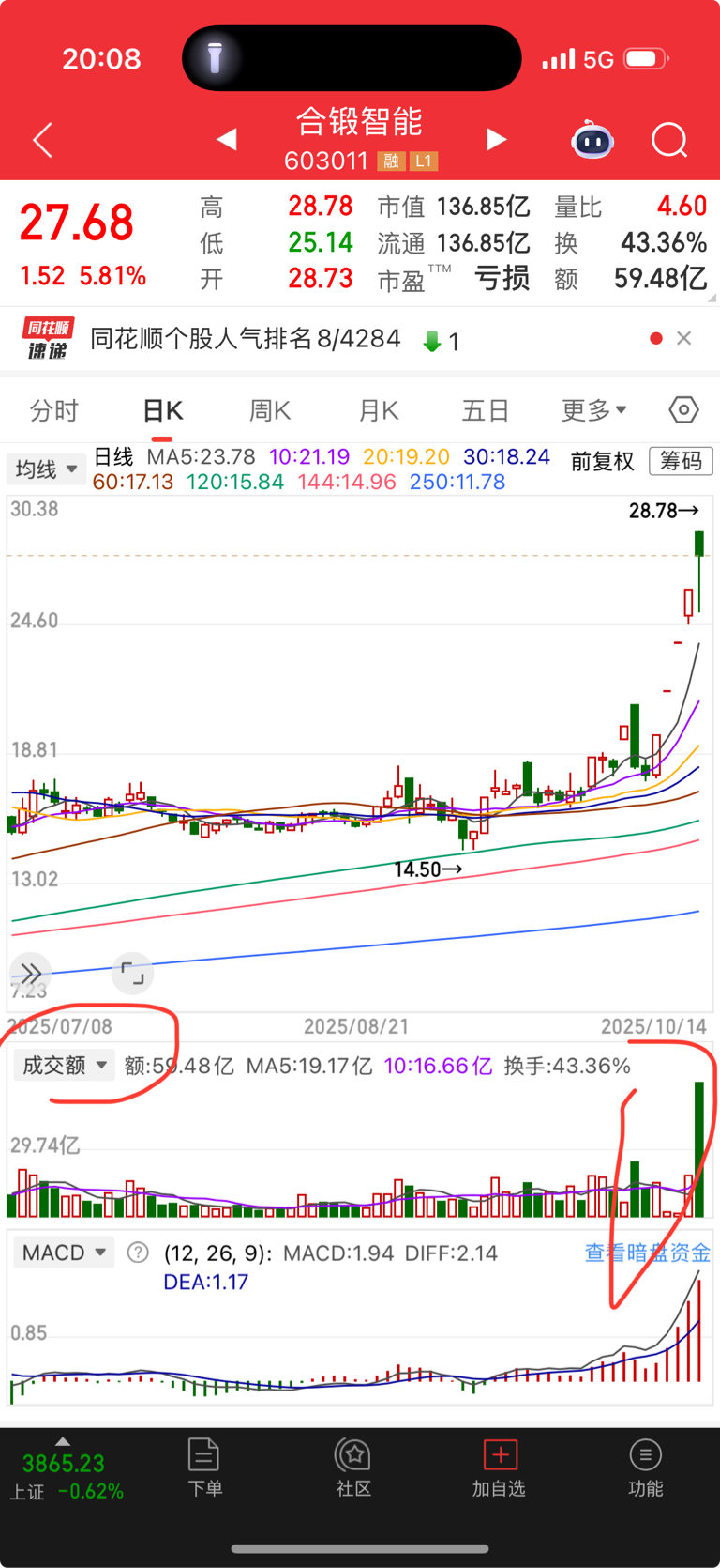 $楚江新材(SZ002171)$ 明天参考合锻智能,缩量一字板!