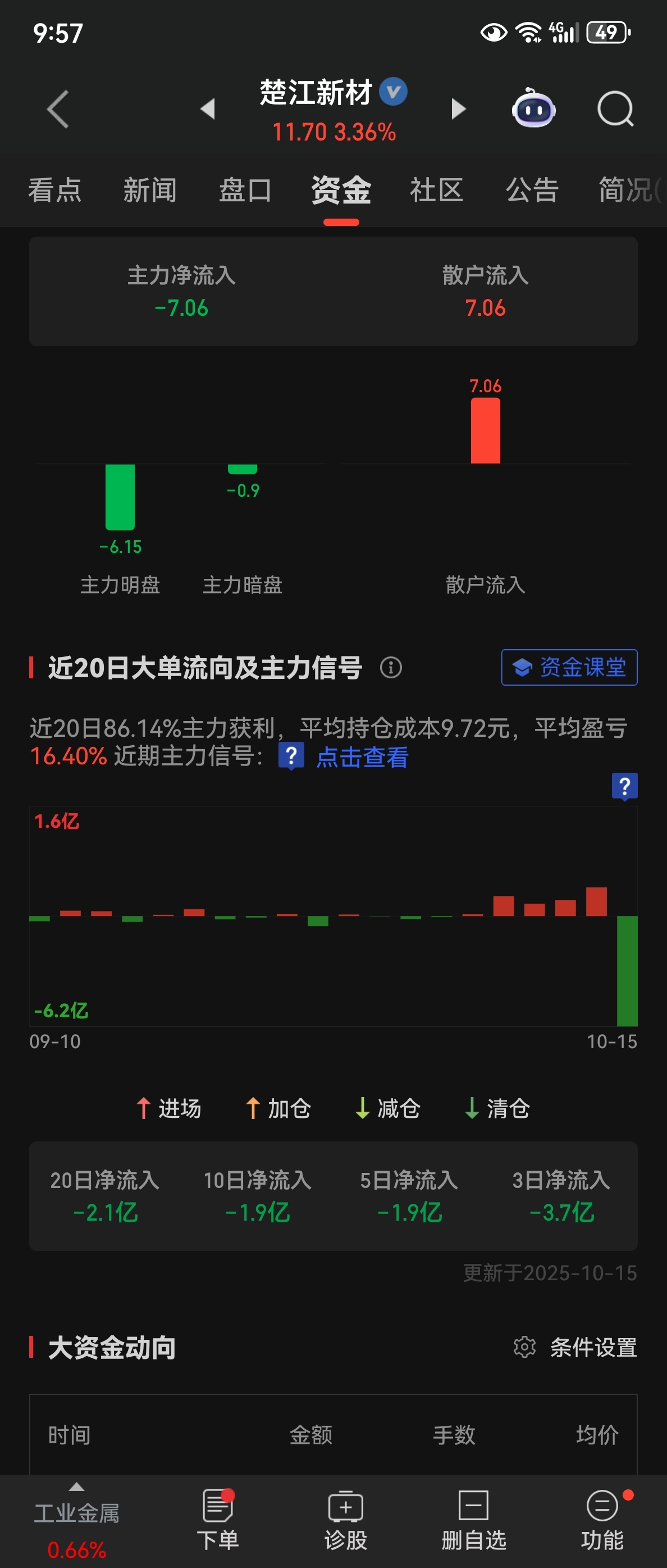 $楚江新材(SZ002171)$ 主力一跑,小散一买,这票准跌!