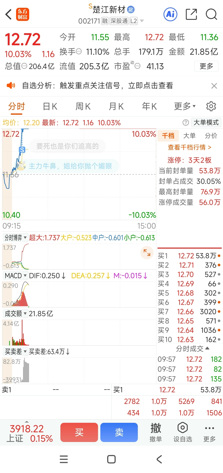 $楚江新材(SZ002171)$ 跑了,可惜了,拿不住