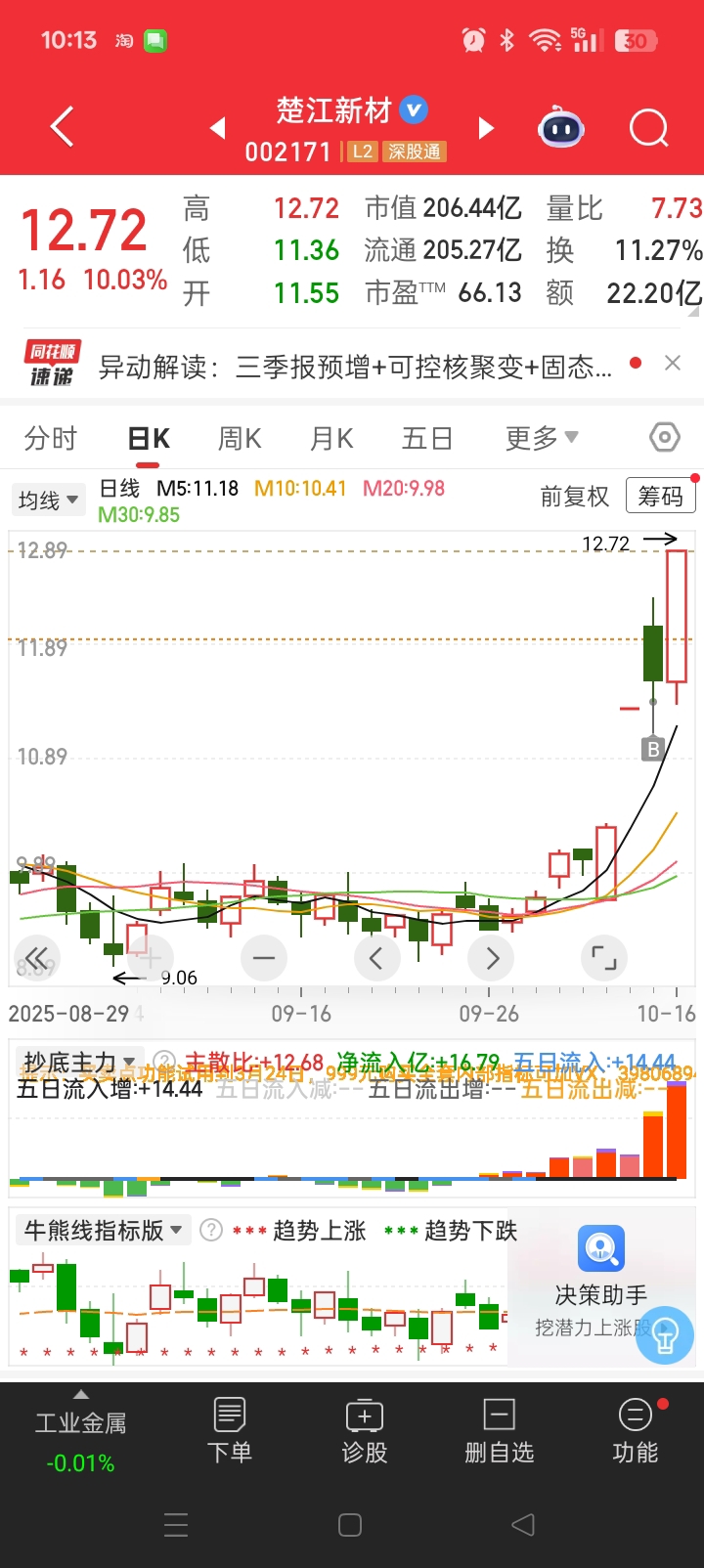 $楚江新材(SZ002171)$ 你这不按套路出牌啊。今天应该跌停啊!