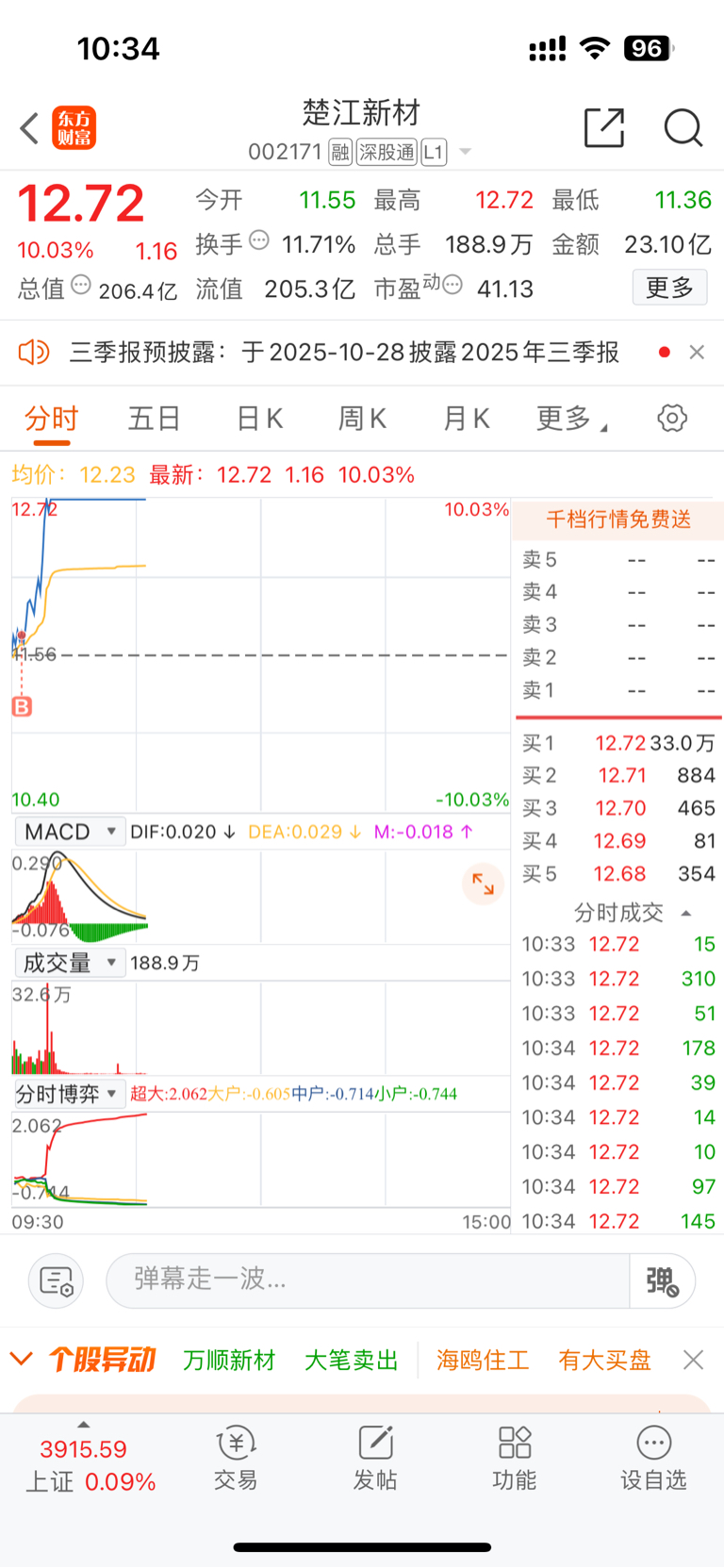 早晨出了昨天的仓位,买入新材,强者恒强。
