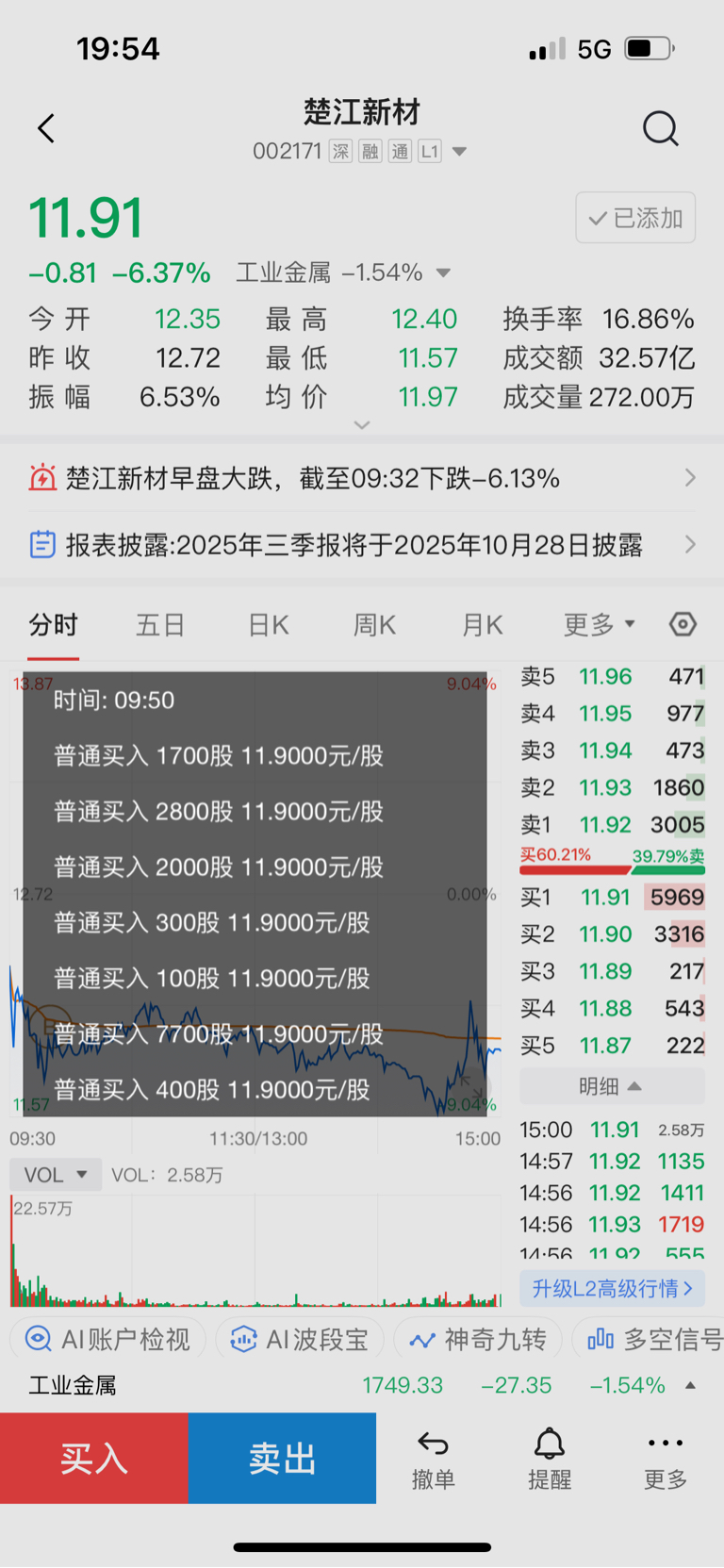 $楚江新材(SZ002171)$ 怒挣一分钱