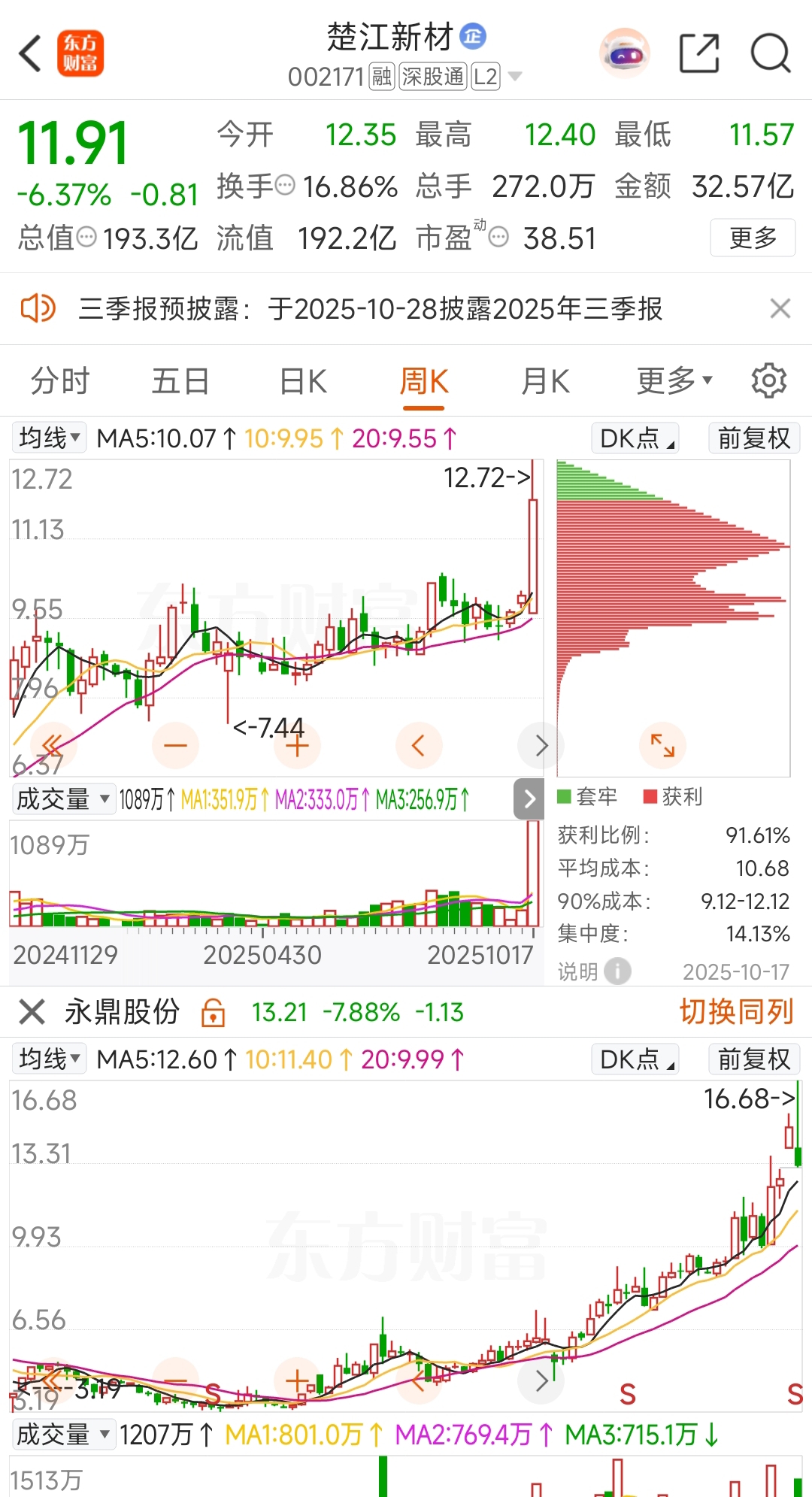 $楚江新材(SZ002171)$ 拿一个涨了五倍的股票和一个才刚开始涨的股票来比?真的是脑壳