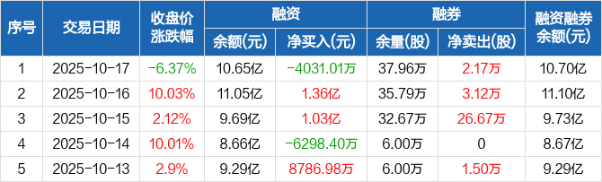 楚江新材:融资净偿还4031.01万元,融资余额10.65亿元(10-17)