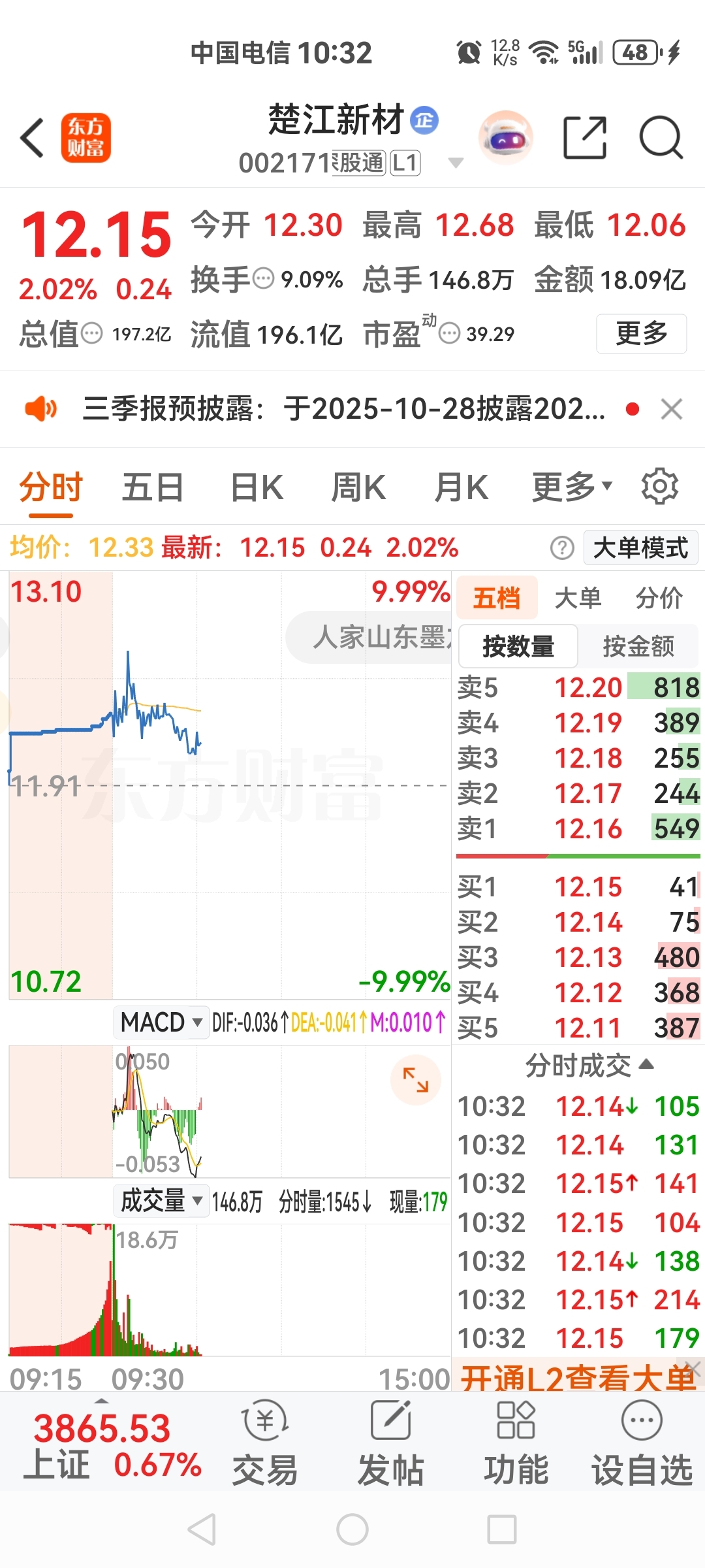 $楚江新材(SZ002171)$ :刚才12.11买入建仓,试一试,博一博。看看明天以后怎样行!…