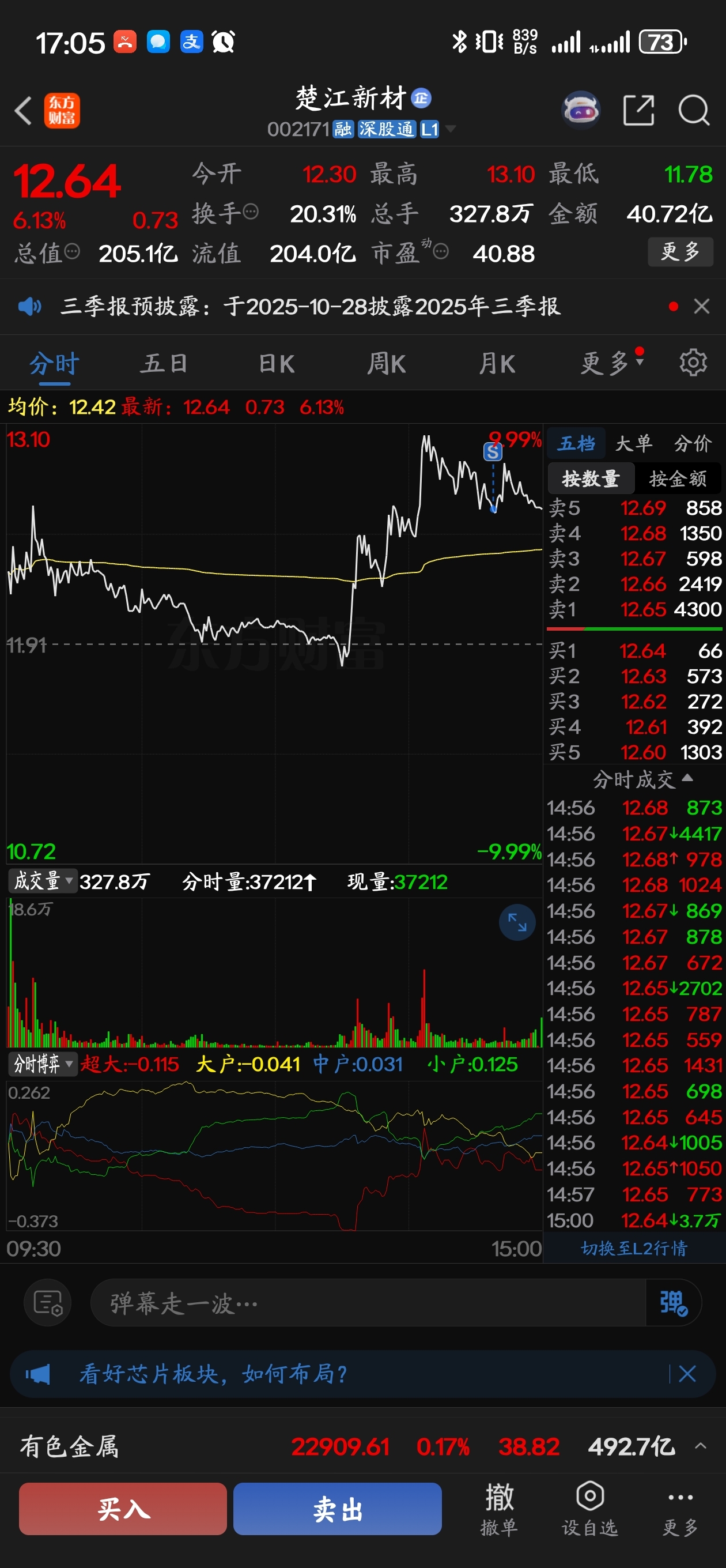 $楚江新材(SZ002171)$ 上班没时间看,少赚4个点。哎