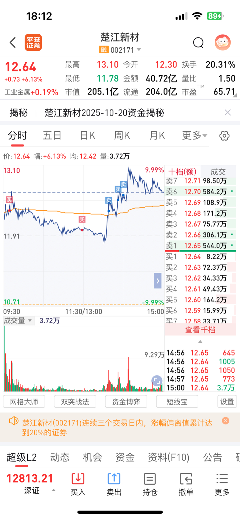 $楚江新材(SZ002171)$ 拿了4天。这庄就这么想跑嘛?不是下午钻石20厘米。30厘米的往上拉。今天就奔水下去了。