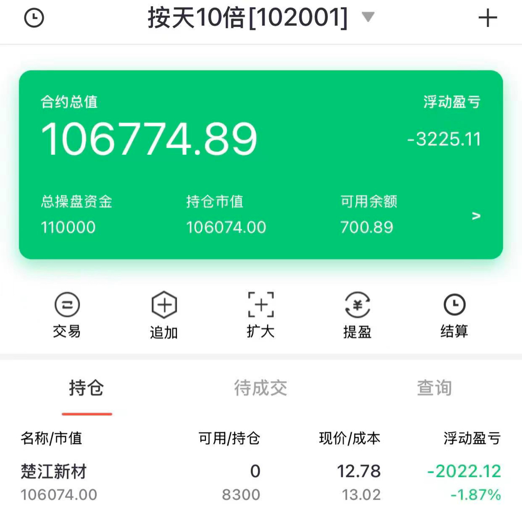 今天直接十倍追进来,就掉下来了,还是看好楚江,明天给点力