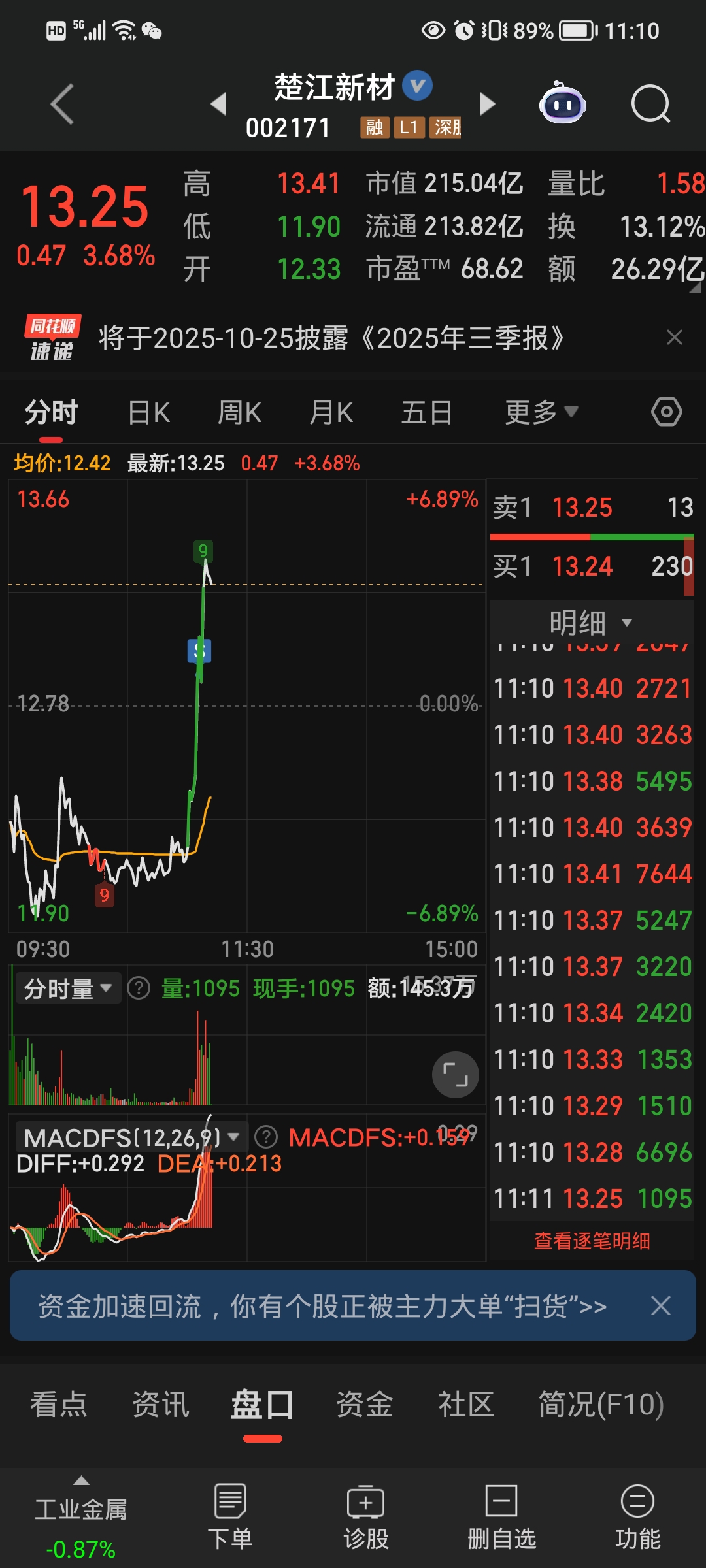 $楚江新材(SZ002171)$ 看着板块一动不动,拐头就跑了,叉
