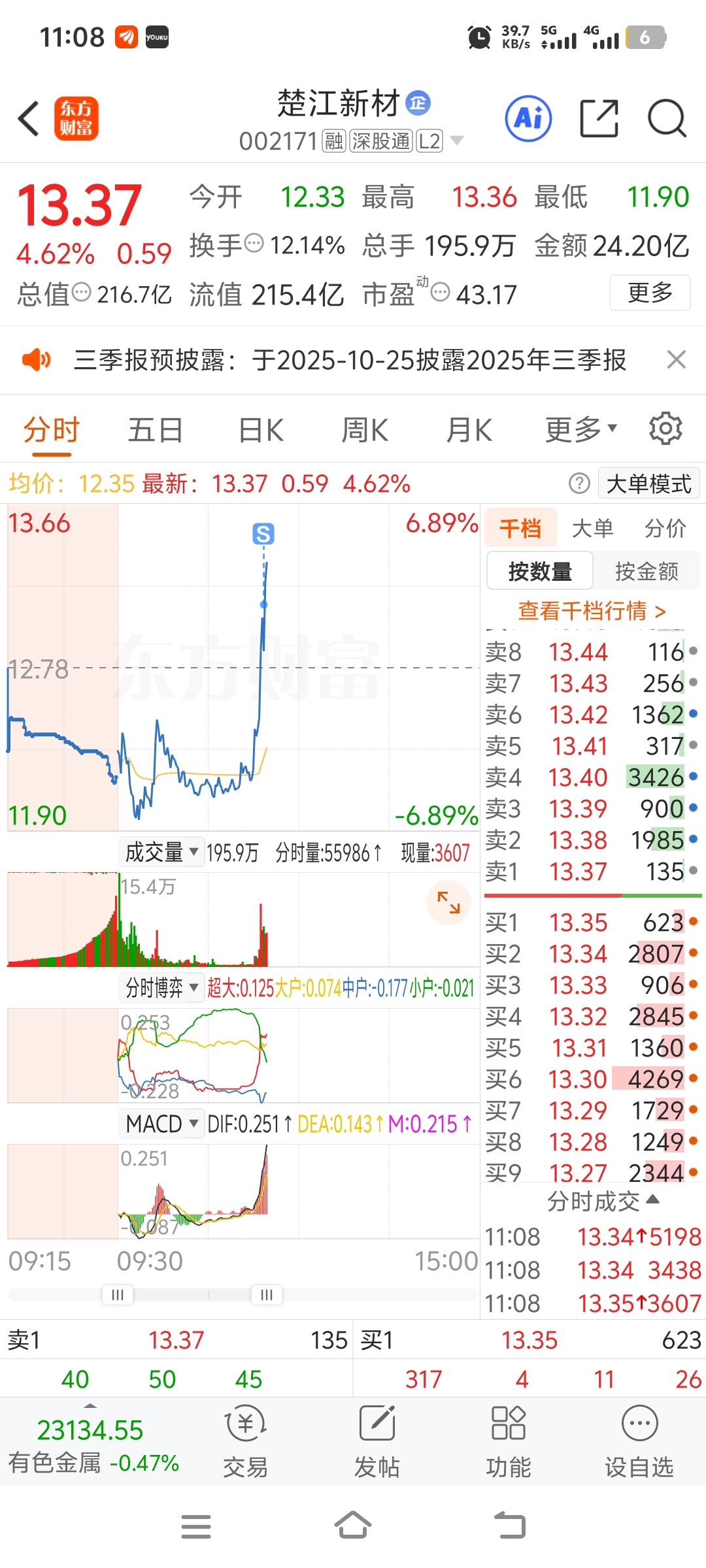 $楚江新材(SZ002171)$ 感谢庄家不杀之恩