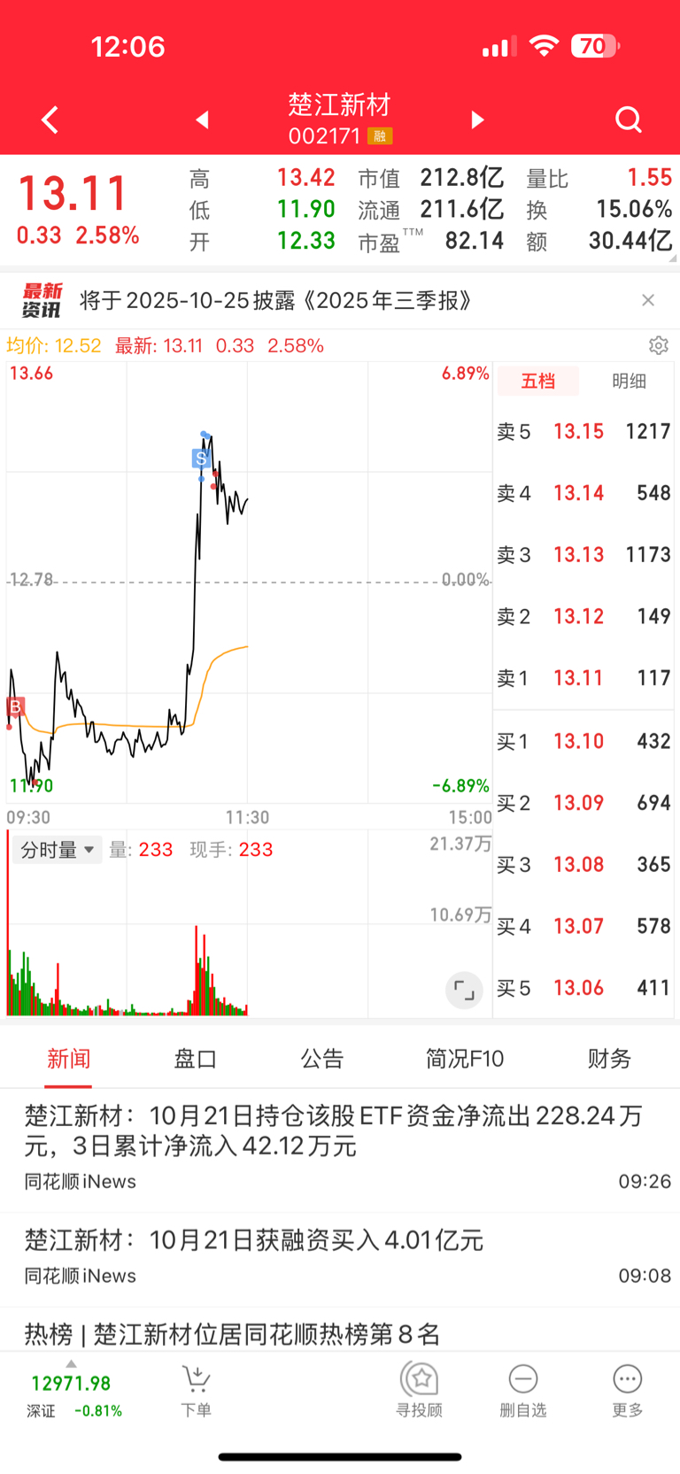 $楚江新材(SZ002171)$ 一只看好楚霸王,前2天都没T,今天低吸了还是降低下成本,不到18不减仓