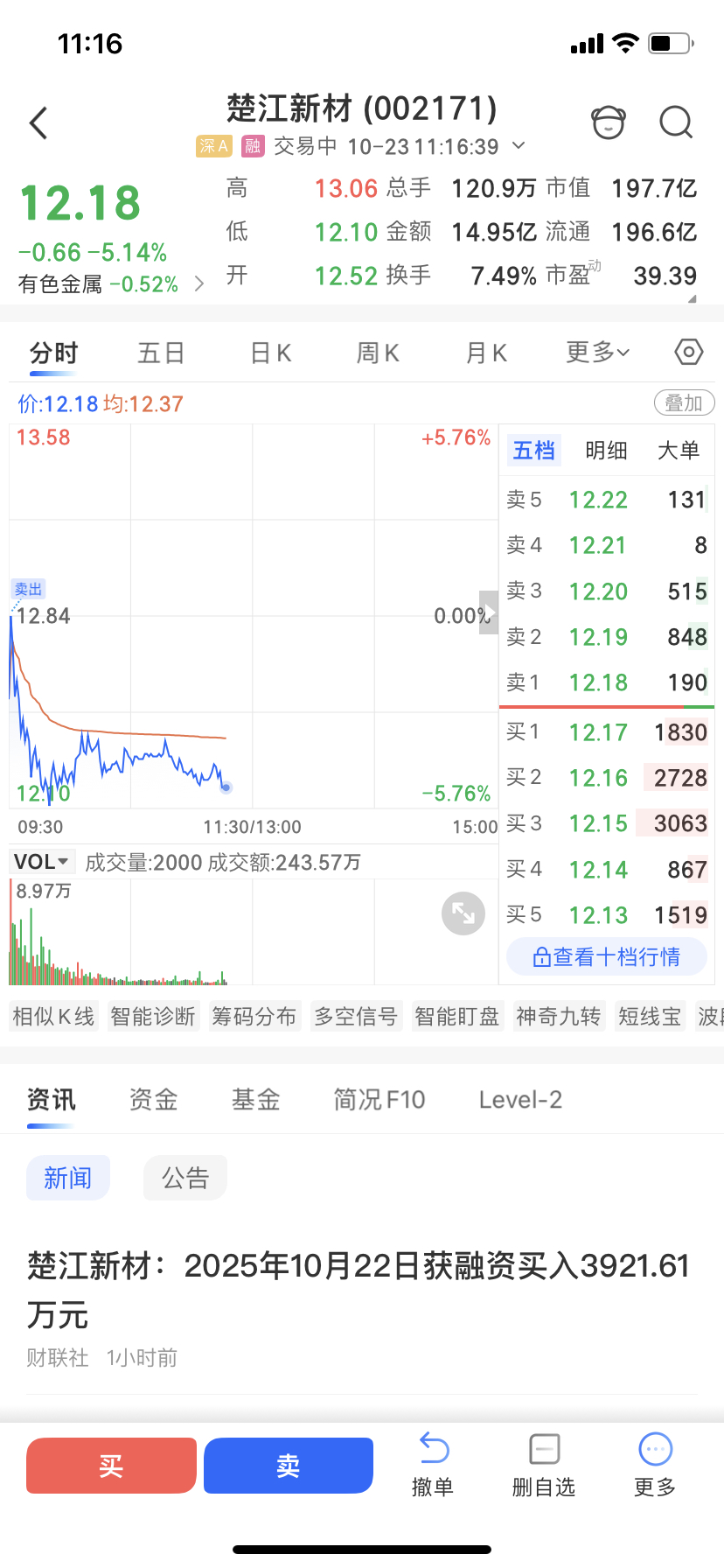 $楚江新材(SZ002171)$ 随便你跌