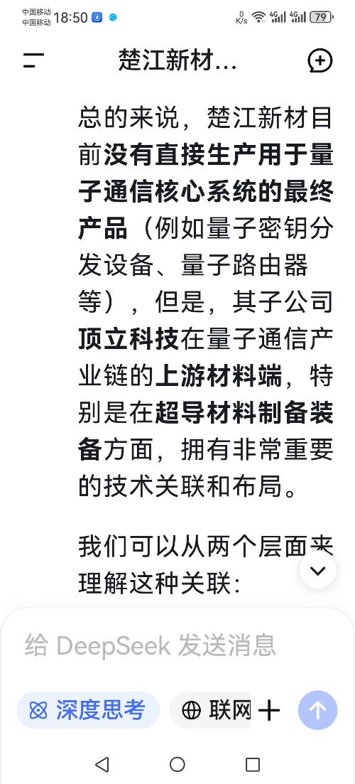 楚江新材被多家机构列为量子通信核心概念企业,2024年11月主力资金净流入达1.08亿元,市场关注度居行业前列9。政策驱动机遇国家发改委明确提出开辟量子技术新赛道(2024年)4,公司作为上游材料商有望受益于产业链扩张。