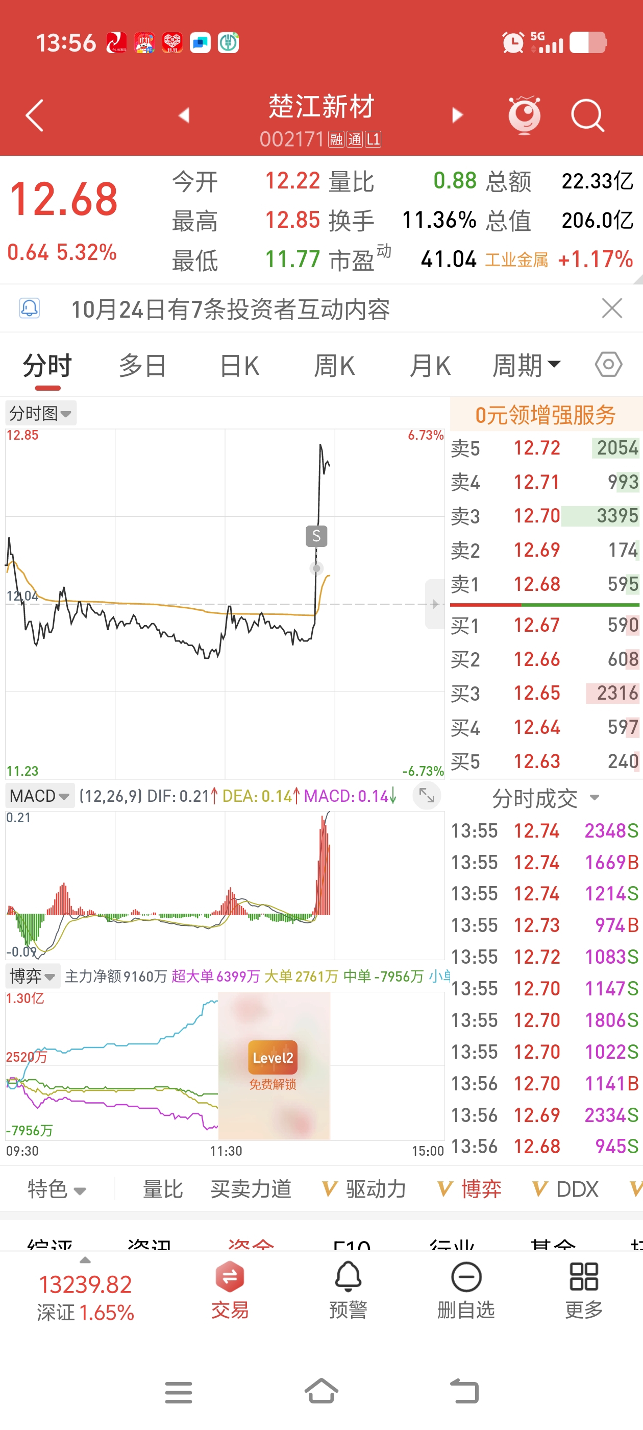 $楚江新材(SZ002171)$ 偷袭,挂单12.2,睡午觉,一睁眼卧槽,把我直接全部吃掉,害我就赚了300块