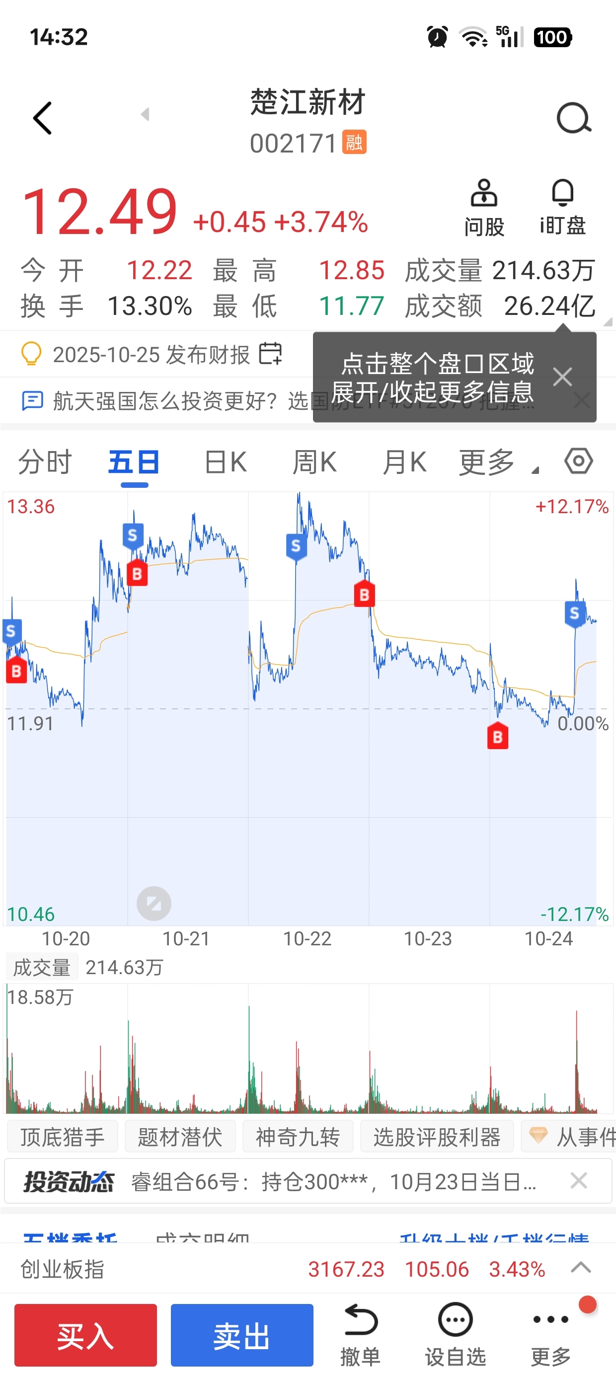 $楚江新材(SZ002171)$ 上午挂12.8就去睡觉了刚刚闹钟叫起来一睡醒居然卖出去了,一会儿收盘前还得买回来