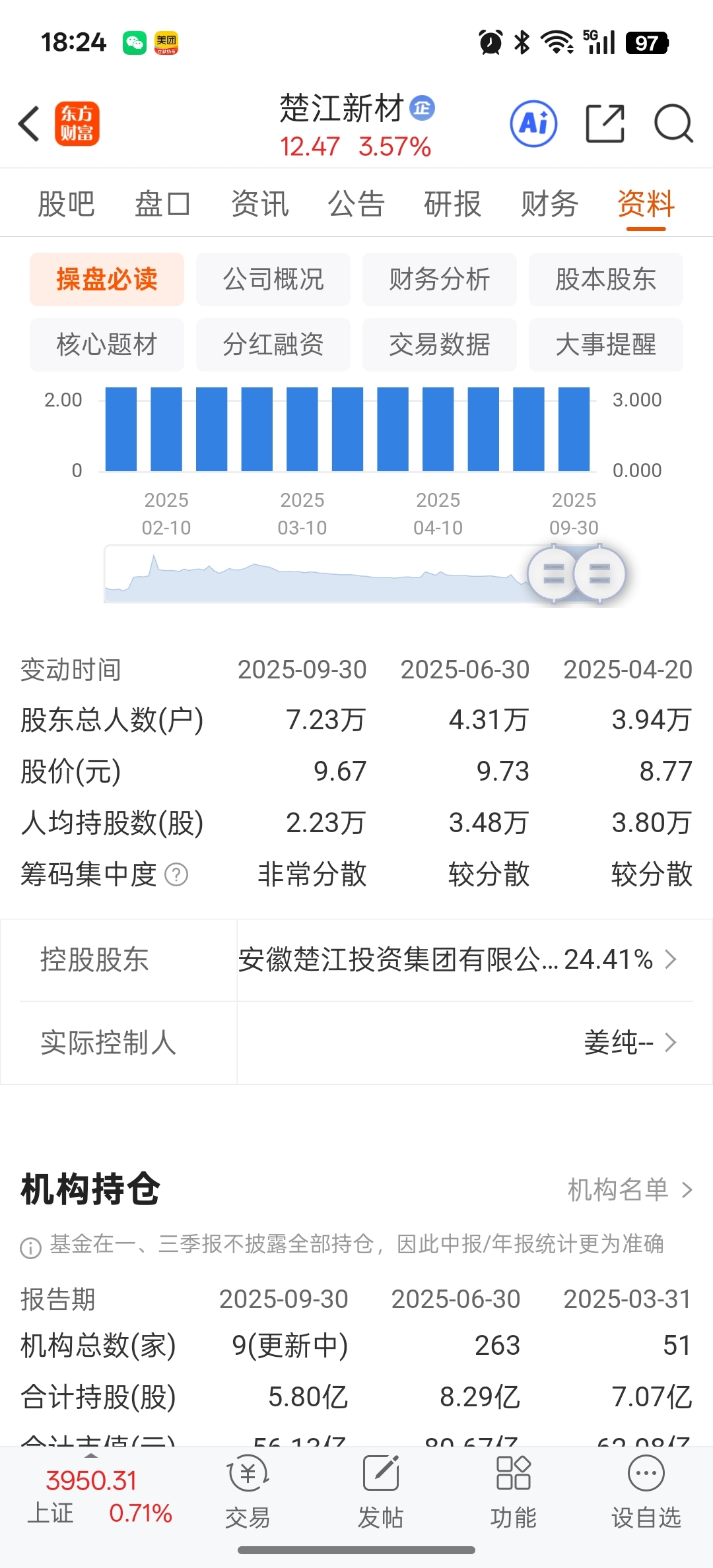 $楚江新材(SZ002171)$ 股东人数三个月增加了差不多三万人,还一堆人在那里唱多,请问主力是傻嘛,拉高送钱给这进来的人嘛?别傻了