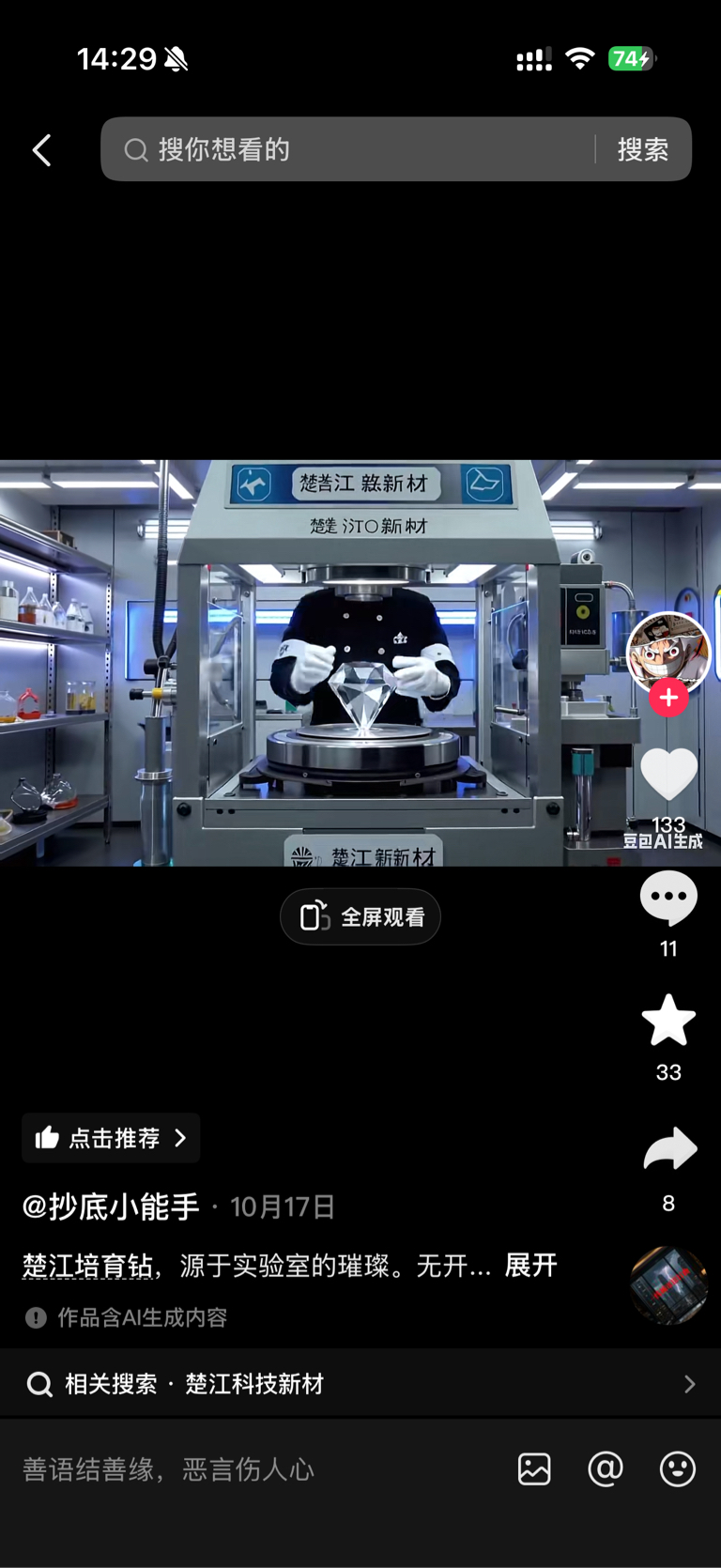 $楚江新材(SZ002171)$ 楚江新材原来还会培育钻石