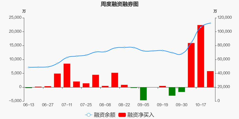 楚江新材本周(2025/10/20-2025/10/24)累计涨幅达4.7%,截至10月24日最新股价报收12.47元。从增量上来看,10月20日至10月23日融资买入交易规模16.41亿元,融资偿还规模15.83亿元,期内融资净买入5818.48万元。从存量上来看,截止10月26日,楚江新材融资融券余额11.28亿元,其中融资余额规模11.23亿元,融券余额规模448.97万元。