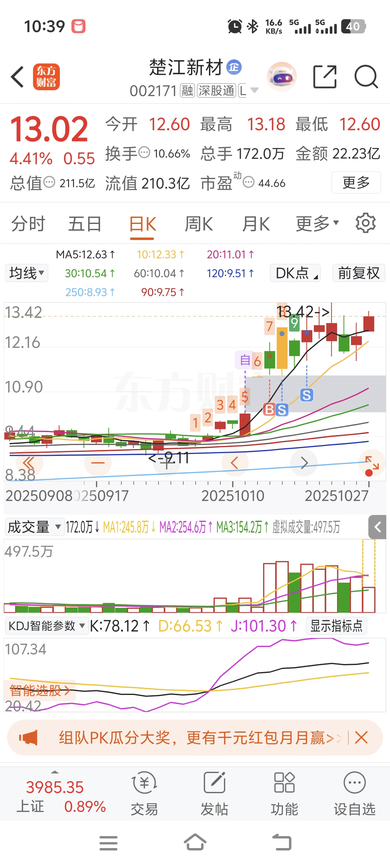 $楚江新材(SZ002171)$ 10日线附近不买回,错了错了,恭喜还在车上的朋友