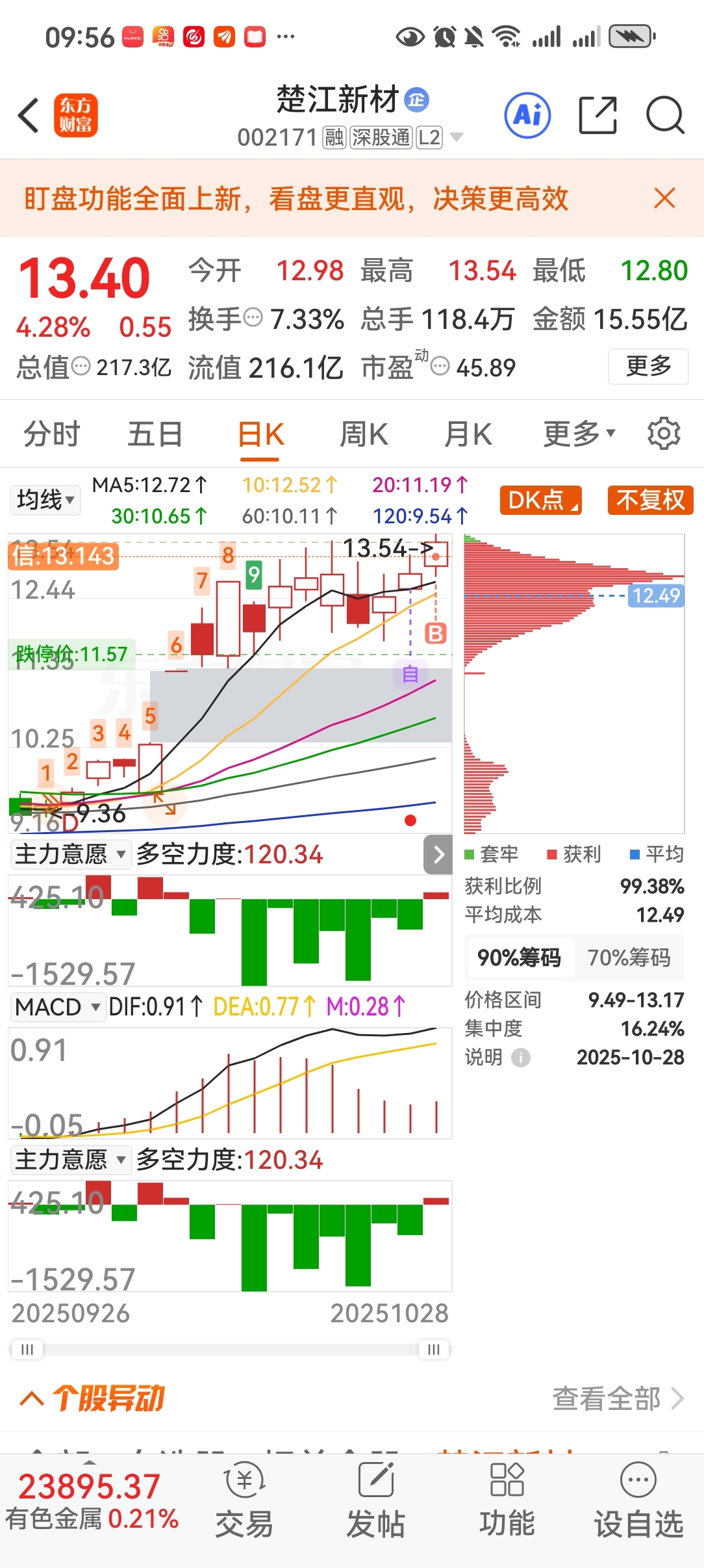 $楚江新材(SZ002171)$ 刚进来,有没有肉吃呢13.14的价格