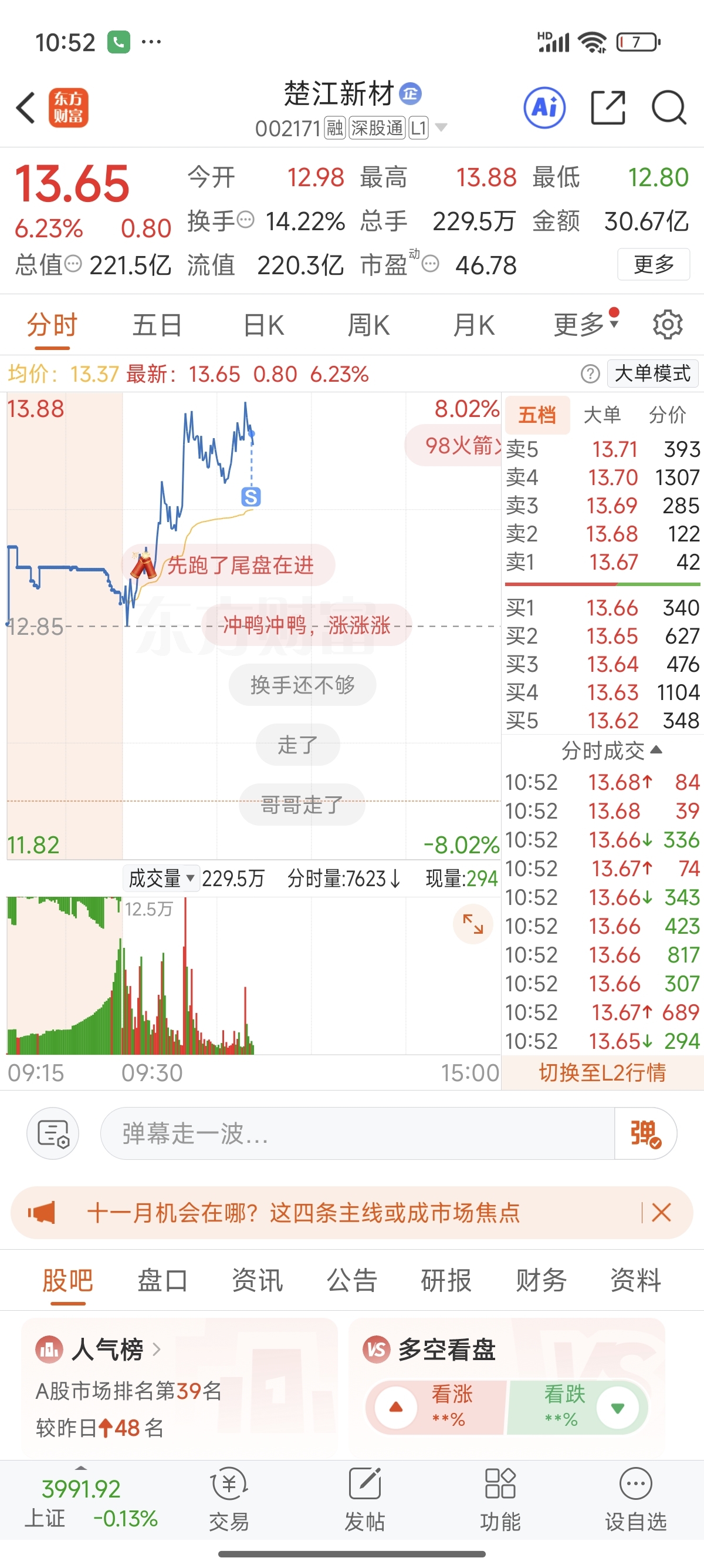 $楚江新材(SZ002171)$ 一个涨停这么费劲,肯定有毒,