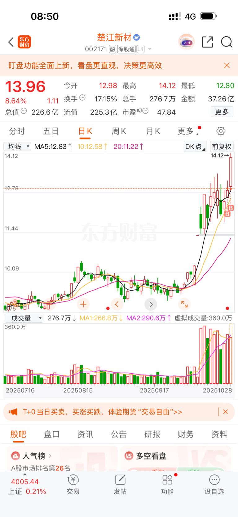 $楚江新材(SZ002171)$ 今天早上本来想清仓卖出楚江新材再全仓买达华智能,谁知鬼使神差地将全仓卖出点到全仓买入!想全仓买入达华智能时一看怎么没有可用的资金了?返回一看原来已经全仓买入了楚江新材,真是天助我也!哈哈哈!