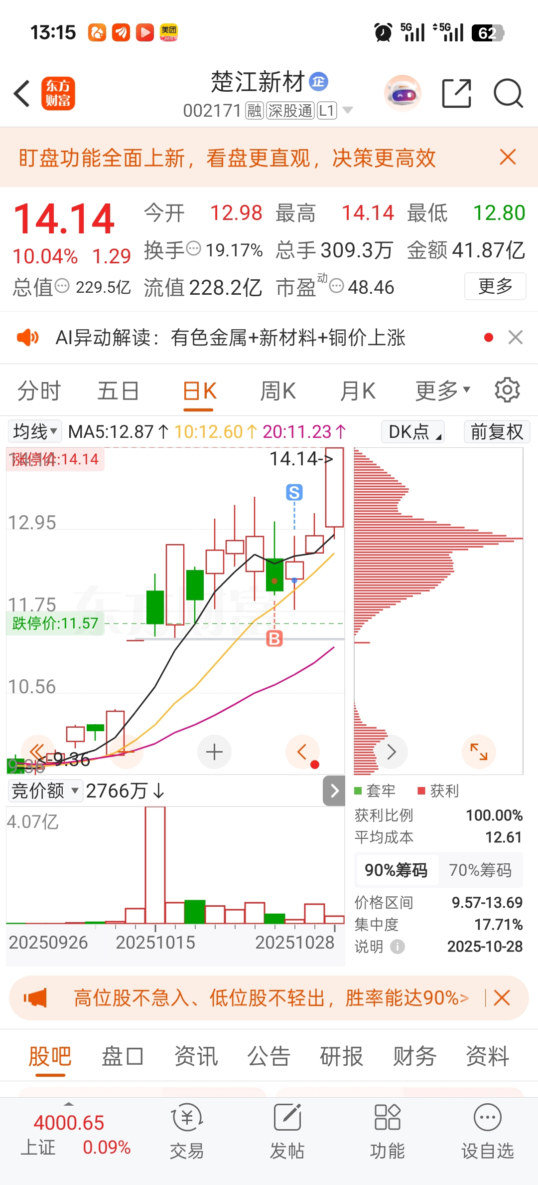 $楚江新材(SZ002171)$ 我说过这是妖股