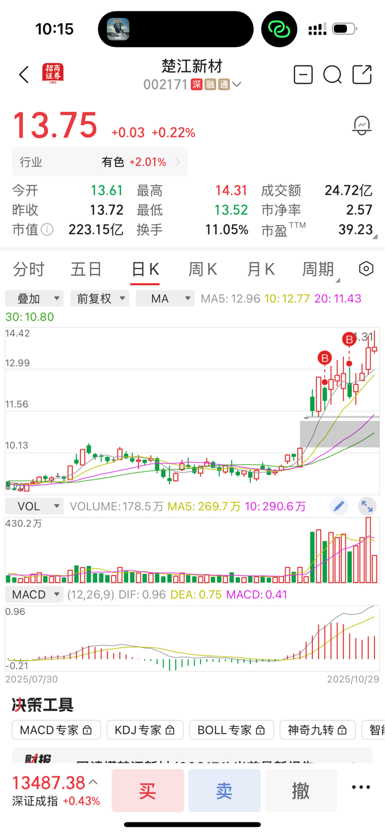 $楚江新材(SZ002171)$ 天天t个没完了,八根上影 来个痛快的呀 买进来都没动