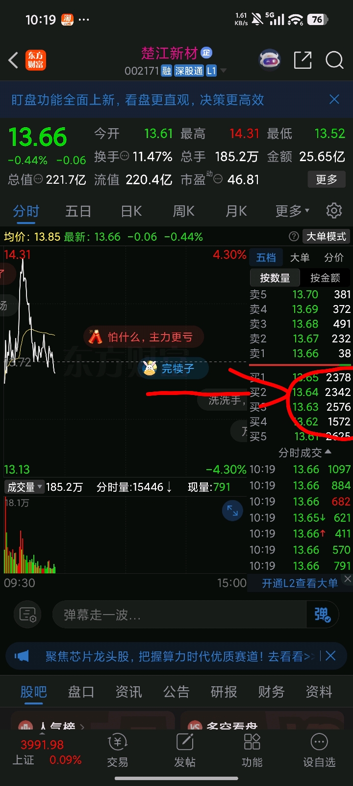 $楚江新材(SZ002171)$ 一堆拖单,,,持续向下了