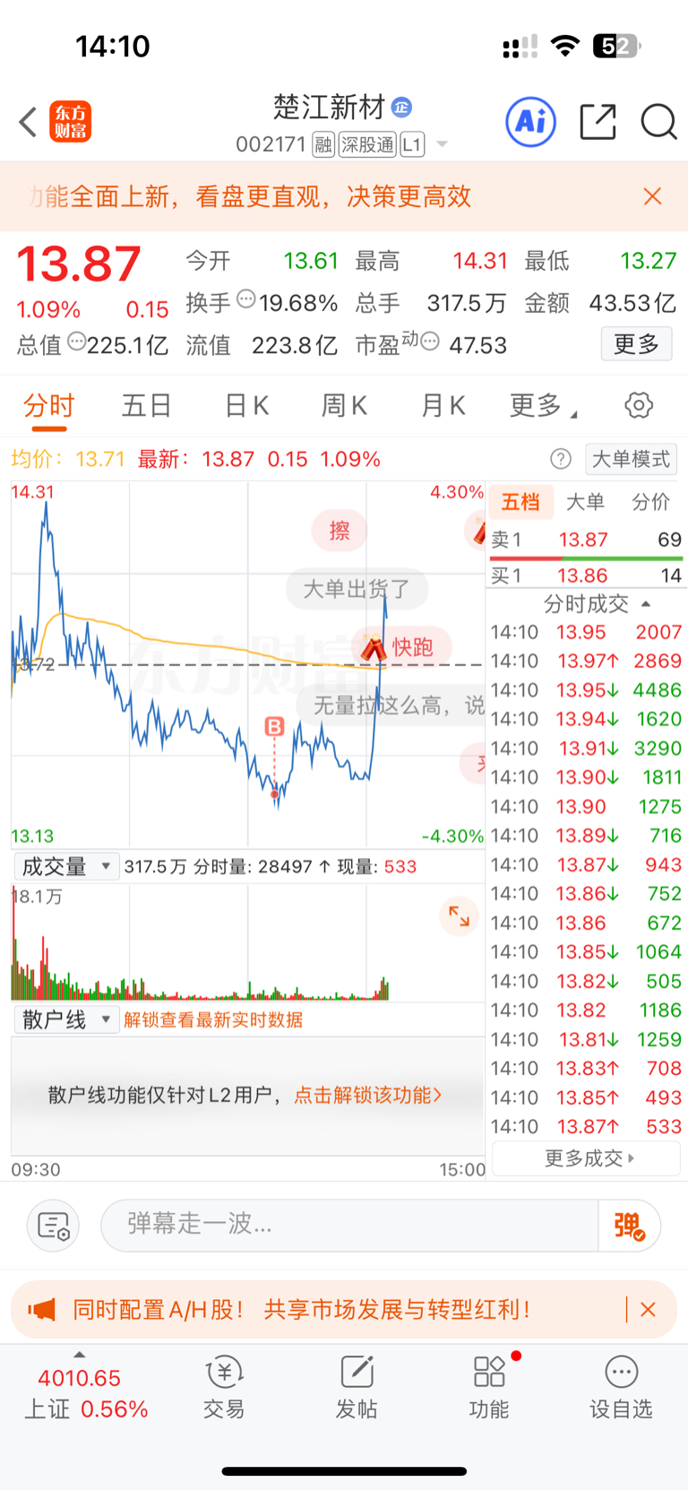 温馨提示: 1.根据《证券法》规定,禁止编造、传播虚假信息或者误导性信息,扰乱证券市场;2.用户在本社区发表的所有资料、言论等仅代表个人观点,与本网站立场无关,不对您构成任何投资建议。用户应基于自己的独立判断,自行决定证券投资并承担相应风险。《东方财富社区管理规定》