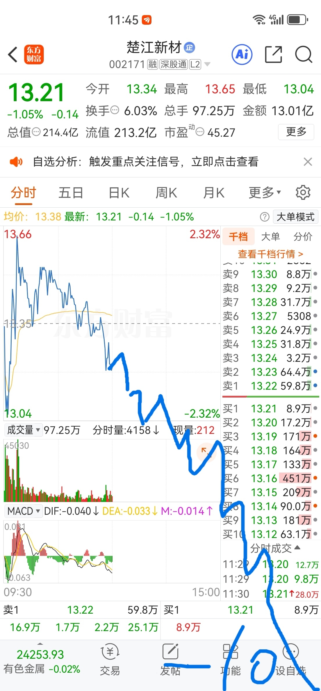 $楚江新材(SZ002171)$ 兄弟们下午走势我也预判到了 看图吧,记得点个赞谢谢。