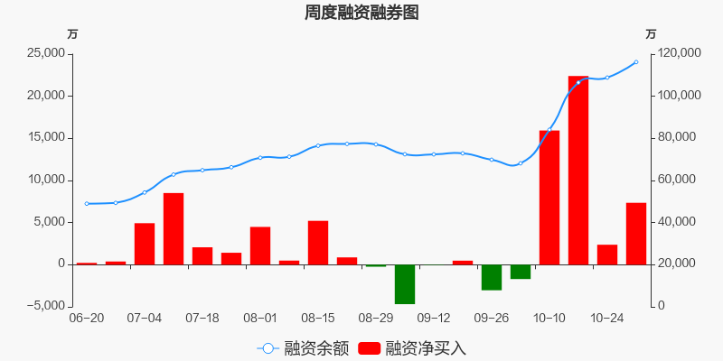 楚江新材本周(2025/10/27-2025/10/31)累计涨幅达6.9%,截至10月31日最新股价报收13.33元。从增量上来看,10月27日至10月30日融资买入交易规模22.5亿元,融资偿还规模21.77亿元,期内融资净买入7352.65万元。从存量上来看,截止11月2日,楚江新材融资融券余额11.67亿元,其中融资余额规模11.62亿元,融券余额规模452.3万元。