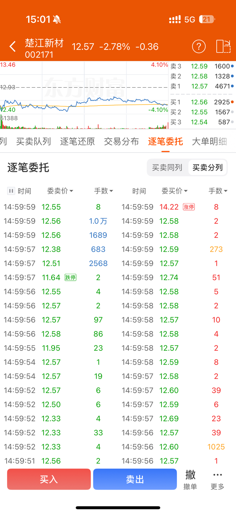 $楚江新材(SZ002171)$ 还好割了,最后一秒还有万手哥卖出