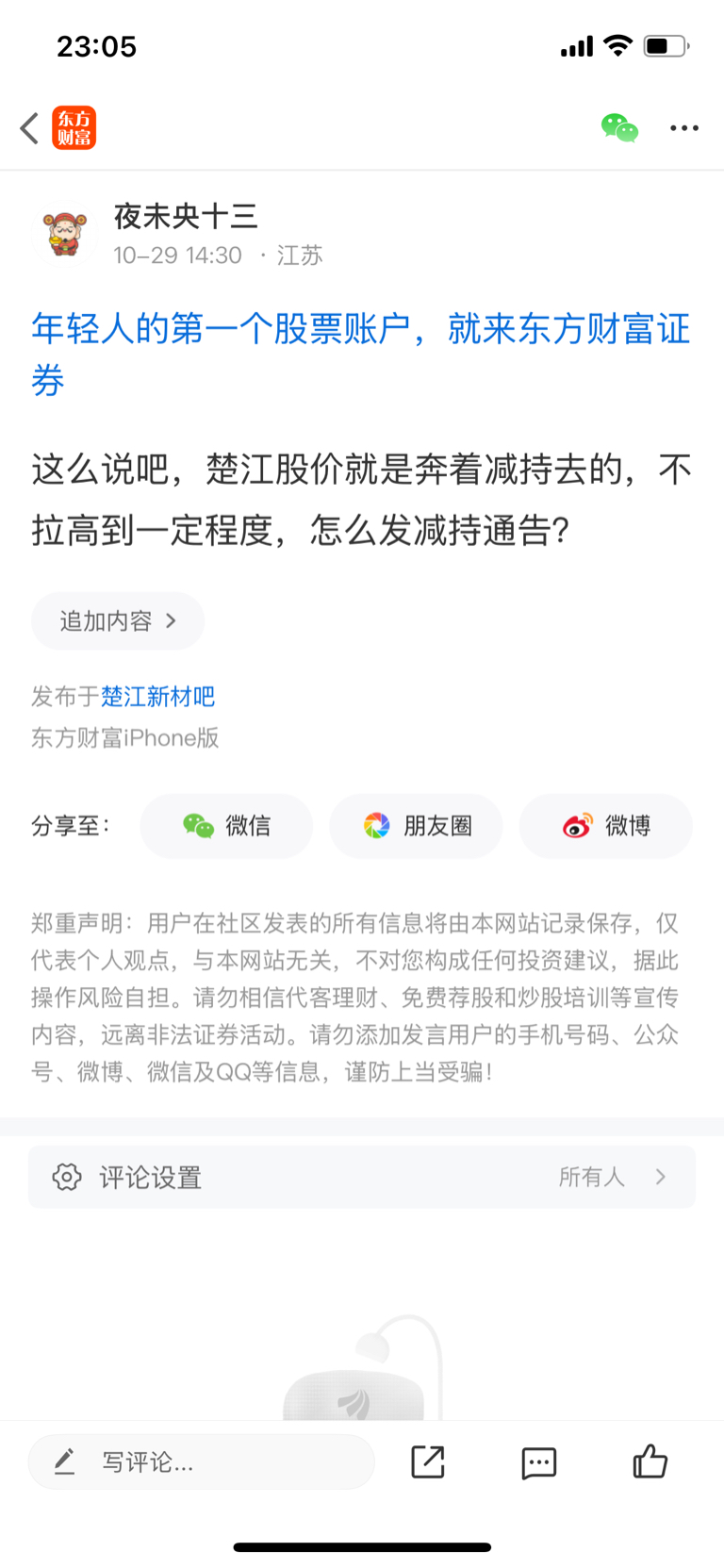 温馨提示: 1.根据《证券法》规定,禁止编造、传播虚假信息或者误导性信息,扰乱证券市场;2.用户在本社区发表的所有资料、言论等仅代表个人观点,与本网站立场无关,不对您构成任何投资建议。用户应基于自己的独立判断,自行决定证券投资并承担相应风险。《东方财富社区管理规定》