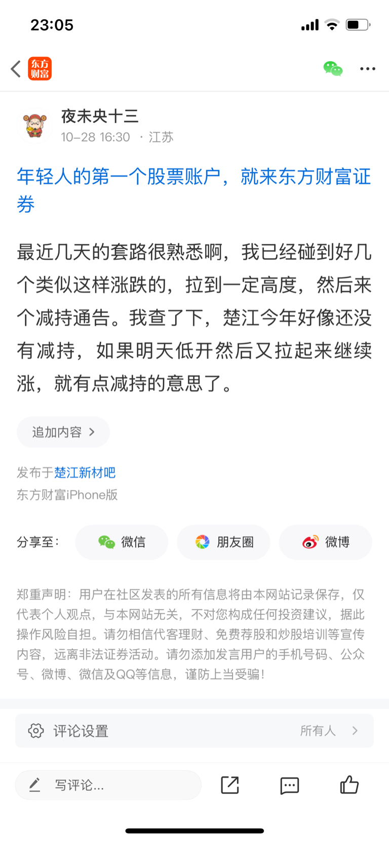 温馨提示: 1.根据《证券法》规定,禁止编造、传播虚假信息或者误导性信息,扰乱证券市场;2.用户在本社区发表的所有资料、言论等仅代表个人观点,与本网站立场无关,不对您构成任何投资建议。用户应基于自己的独立判断,自行决定证券投资并承担相应风险。《东方财富社区管理规定》