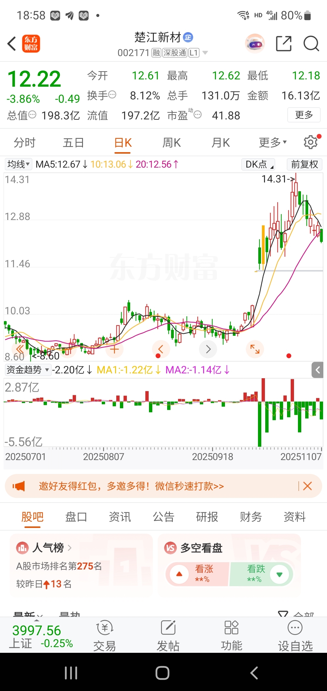 $楚江新材(SZ002171)$ 一直都在资金流出。