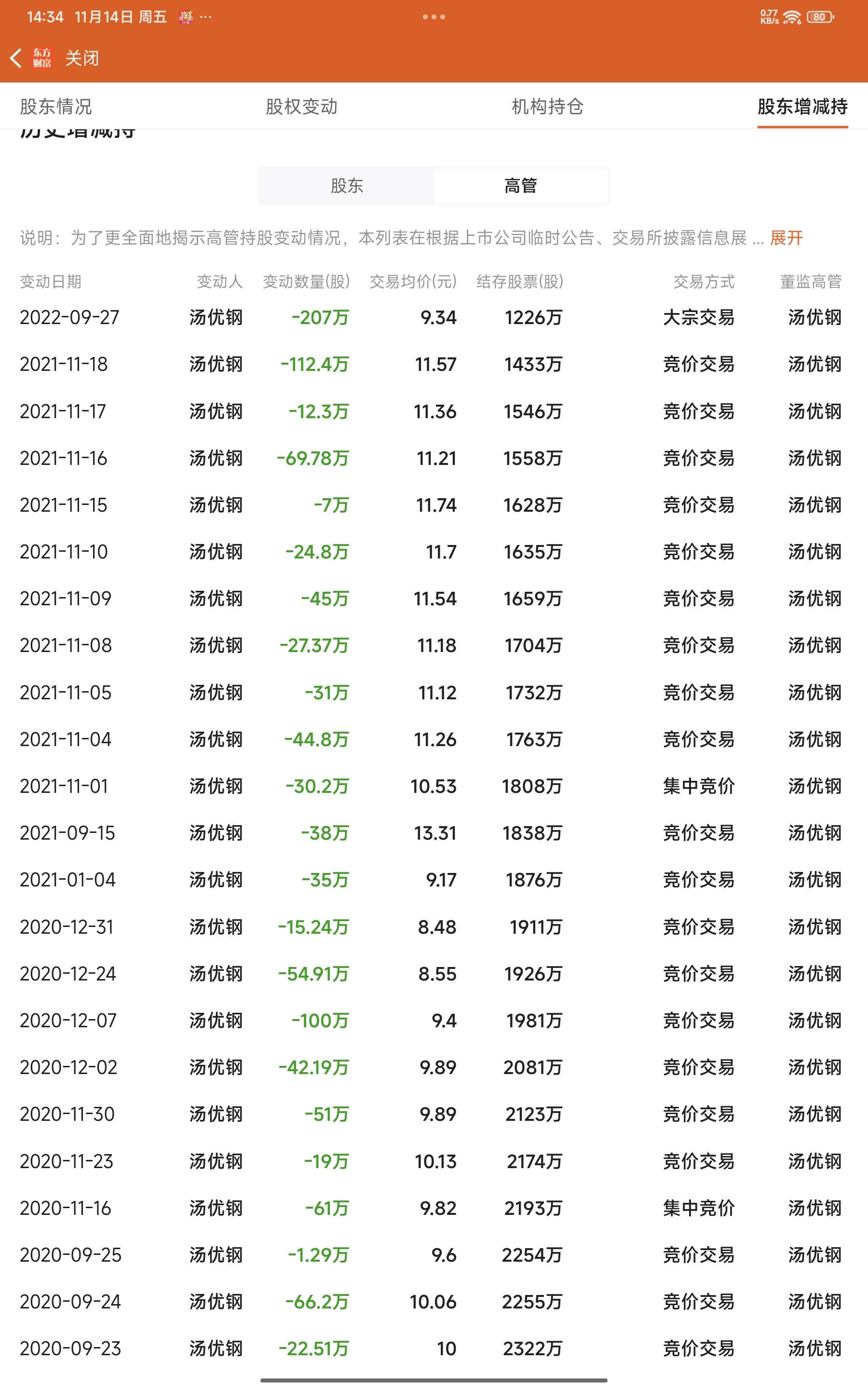 $楚江新材(SZ002171)$ 看看这家伙的减持记录,这股怎么能好呢。