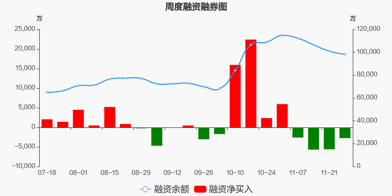 楚江新材本周(2025/11/24-2025/11/28)累计涨幅达7.14%,截至11月28日最新股价报收11.56元。从增量上来看,11月24日至11月27日融资买入交易规模2.94亿元,融资偿还规模3.22亿元,期内融资净偿还2725.8万元。从存量上来看,截止11月30日,楚江新材融资融券余额9.85亿元,其中融资余额规模9.83亿元,融券余额规模286.59万元。