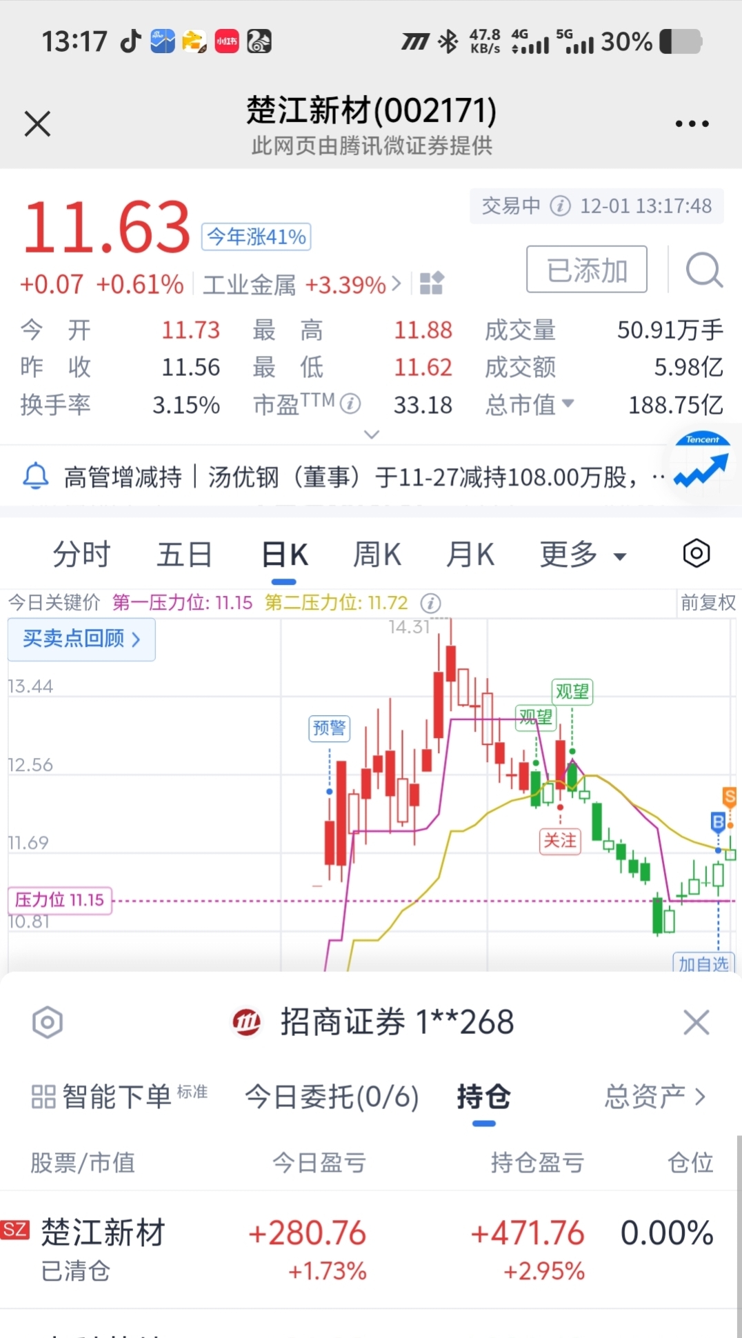 $楚江新材(SZ002171)$ 不好意思,主力,挂你山上。有本继续拉,我追涨