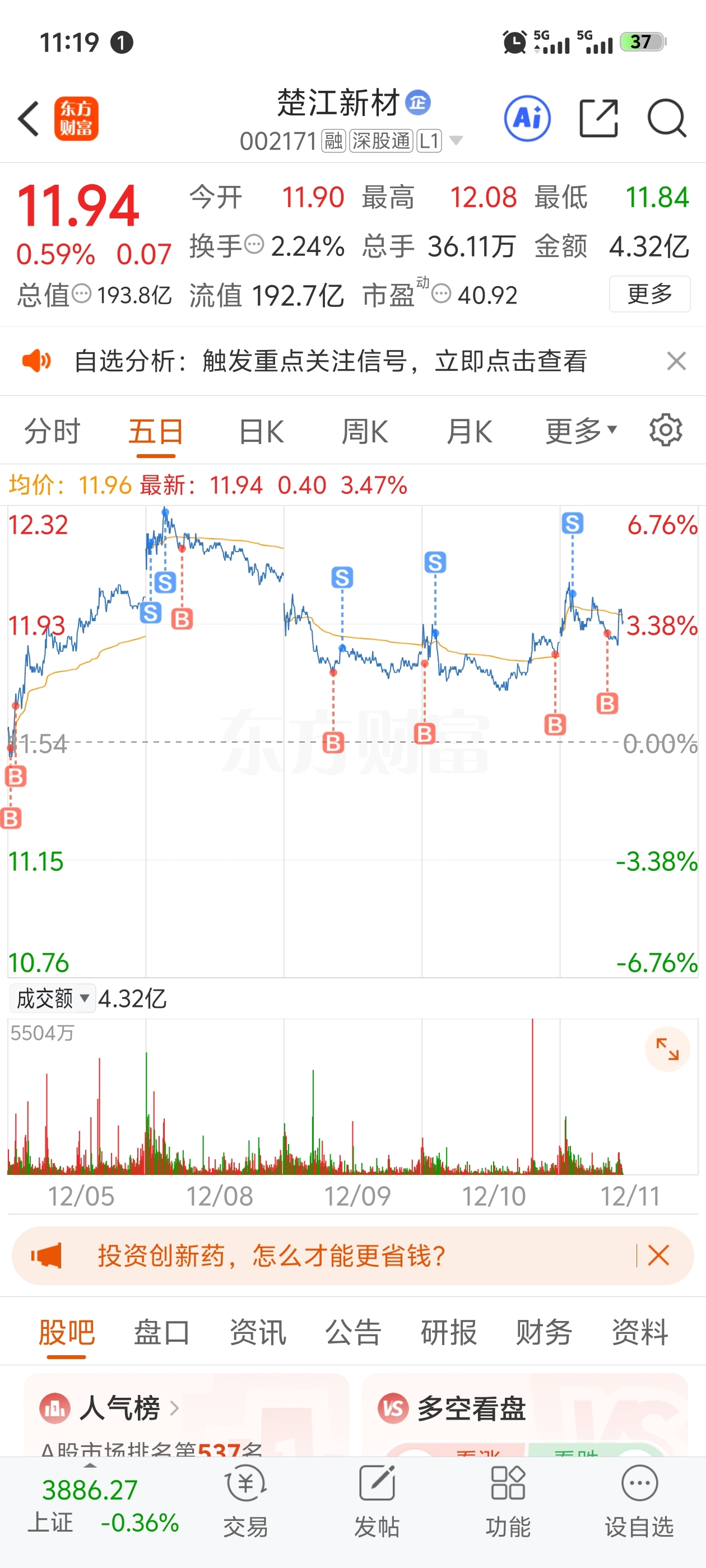 $楚江新材(SZ002171)$ 主力哥哥,是不是感觉好痒,身上有虫子。我就200股玩玩,不影响你赚钱,祝你一路长虹