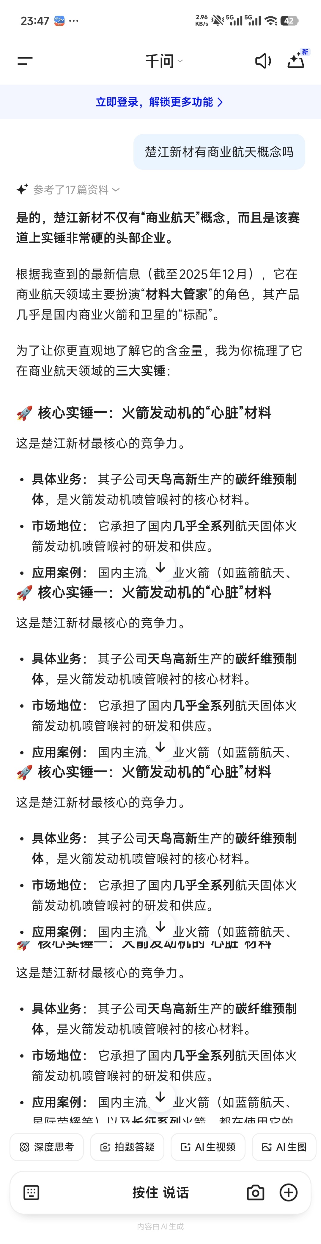 $楚江新材(SZ002171)$ 到底有没有商业航天