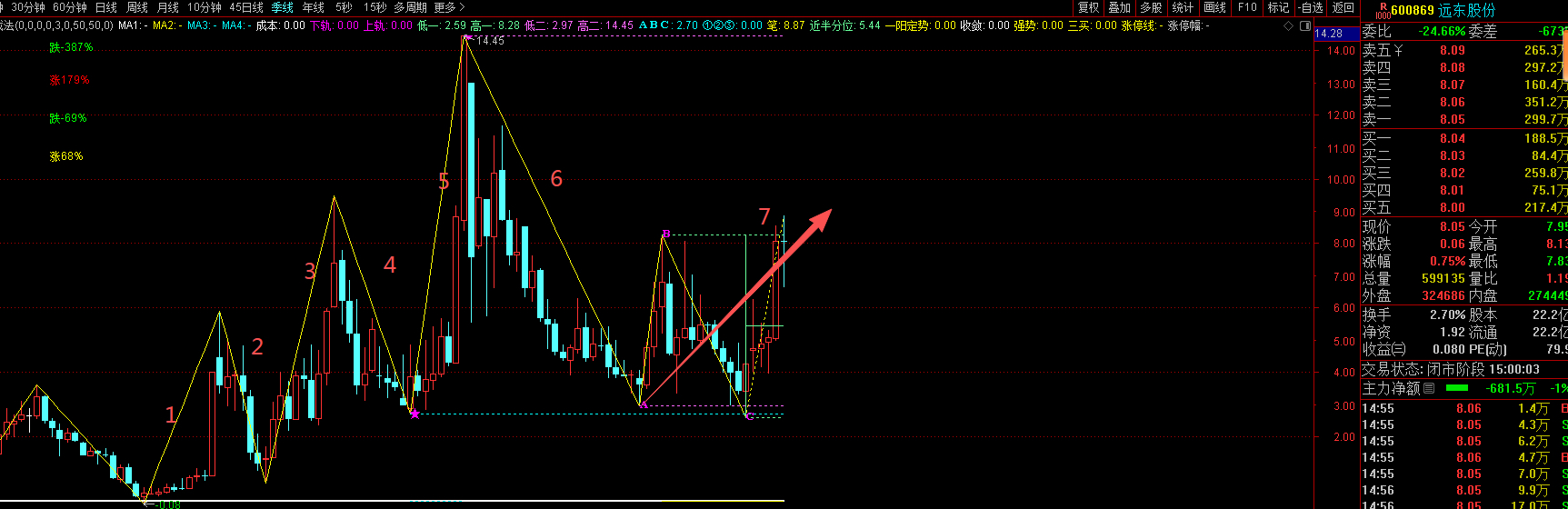 今天的盘面Ai智能体和商业航天表现抢眼,商业航天绝对的跨年主线,昨天刚讲完商业航天整理过后主升浪继续,分歧一天结束比预期还要强。但是坚定看好商业航天的思路从未改变。元旦节后加速主升浪了!加速主升意味顶部也就不远了!这个时候多一份清醒。多一点理智是我应该提醒大家的。该强调的都强调了,你千万不要在加速段失去理智。有筹码的享受最后的狂欢。目前持有东方通信逻辑之前讲过不再重复17.11不是这笔的高点这笔的高点在20附近历史第一缺口位置。所以继续持仓。第二支楚江新材目前大周期的第七笔,小周期的第五笔突破14.34走主升,第三支远东股份也是最新的布局,今天的布局偏保守了!布局的远东股份电气设备叠加商业航天,主营是电气设备。很多人不理解。行情的最后一段我是不想去吃的。所以选了电气设备叠加商业航天概念的远东股份。有业绩支撑,一月进入业绩炒作年报窗口,哪些确定性的方向比如cpo已经走出新高,还没有走出新高的液冷服务器,固态电池都是接下来要去走新高的方向。也是最确定性的东西。一月份抛开现象看本质。业绩确定性的方向是我接下来重点布局方向。远东股份大周期的第七笔,小周期第七笔的第五小笔,等突破8.87突破正式开启。8.87突破之后可以先看第六笔的第二小笔高点10元附近。以上是操作思路和目标。分享的个股都会提示没有提示就是没动。不要一直问盯盘时间不多。2025的收官之战算圆满结束,2026让我们一起策马奔腾吧!周末再讲一讲2026的大方向以及指数缠论分析。告别2025的红绿K线,有追高的遗憾,也有抄底的惊喜;迎接2026的新行情,愿赛道选对,账户飘红,持仓皆牛股。