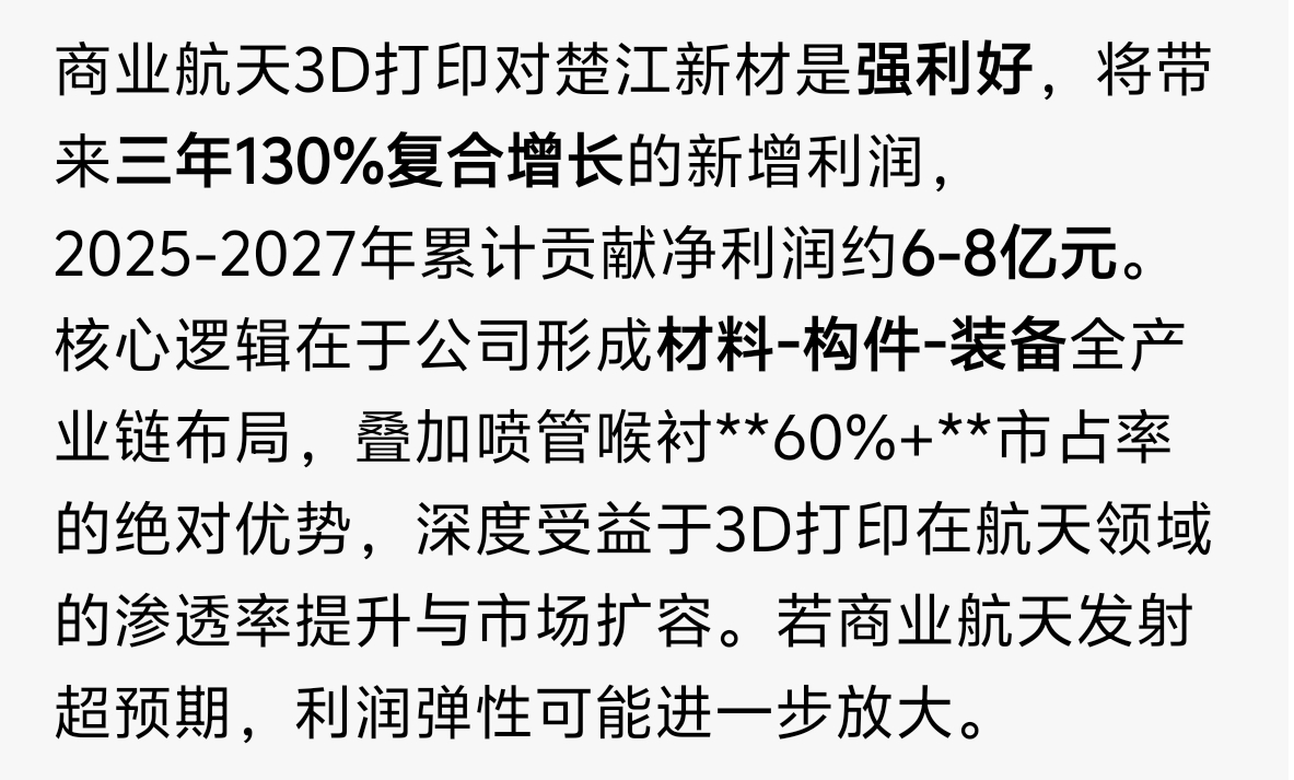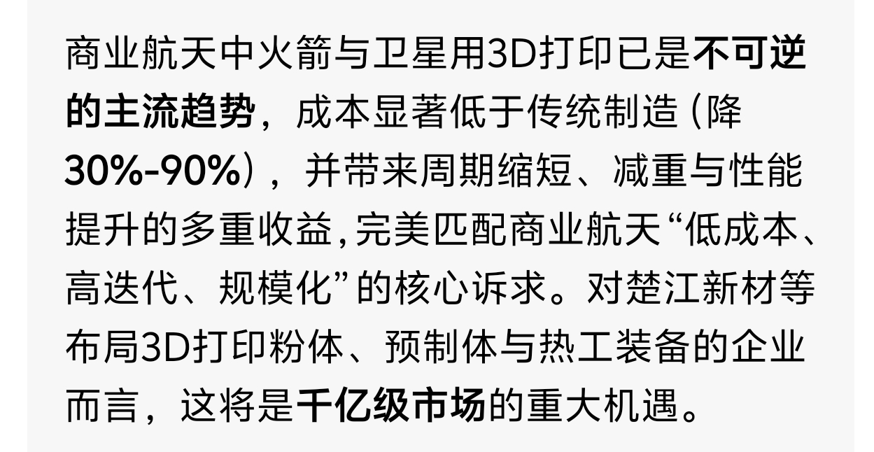 你们买完了么?买完了,我要发利好了第一个:商业航天领域3D打印