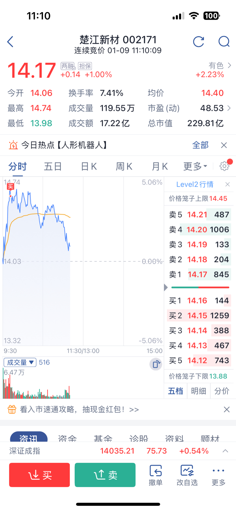 $楚江新材(SZ002171)$ 挂山顶了,我去