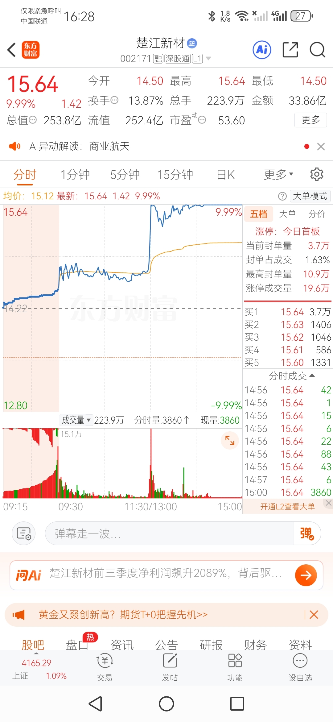 楚江第一板,拿到了