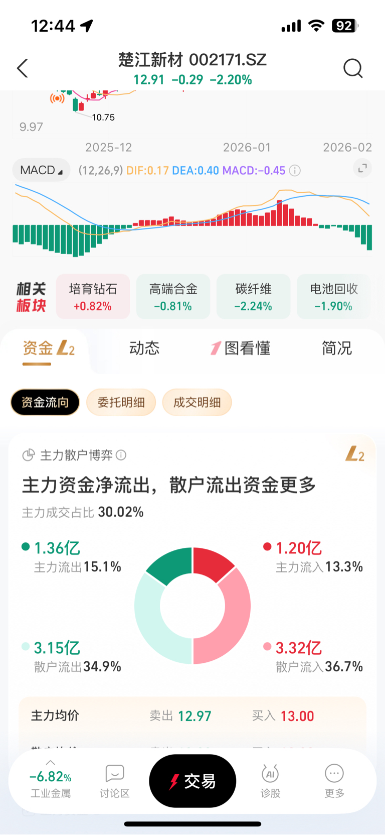 MACD下跌的趋势,估计要跌到春节看能不能企稳回升。主力天天流出,不干活!