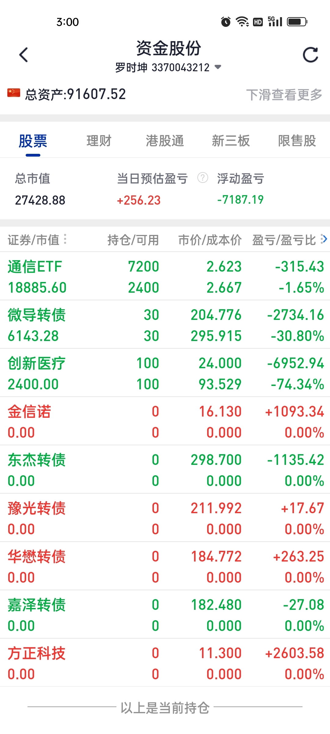 本来所有股都上涨清仓盈利3800+爽歪歪的,早盘买入东杰转债浮盈300左右没来得及清仓,导致亏损1000多,没办法,上帝觉得你一次性提走3800要不得,就在东杰上送出去1100……要不然收盘也会增加1000。