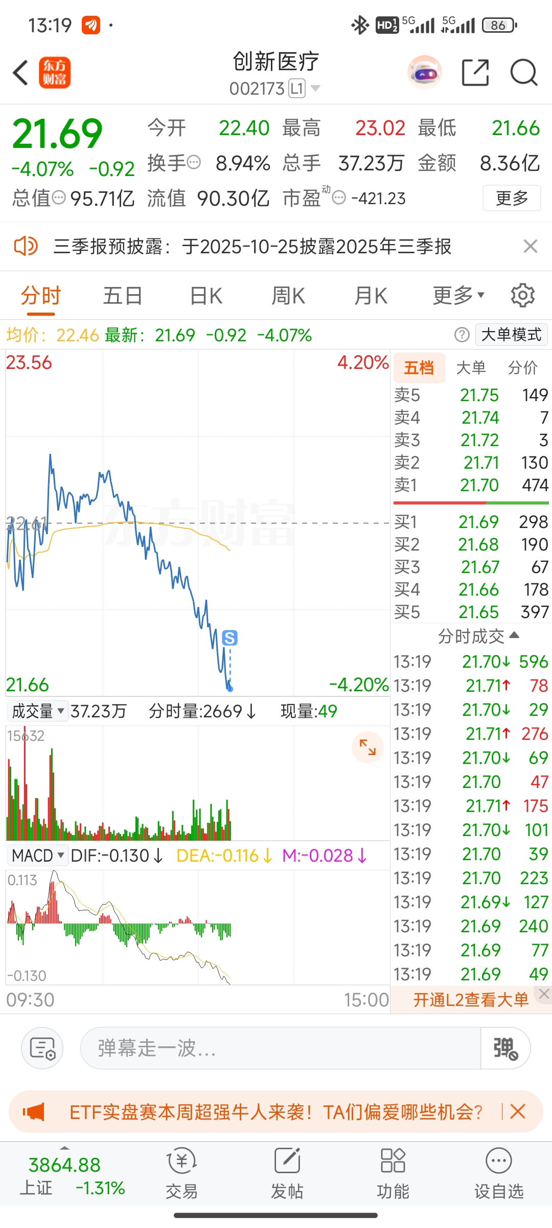 $创新医疗(SZ002173)$ 亏了6%。割肉走了,实在是受不了这个lj