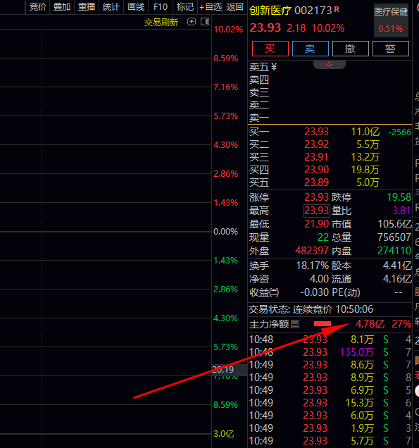 本来只流入两个亿的,现在快五个亿了,最先板的,是不是龙头了?看到买单这么主动本来