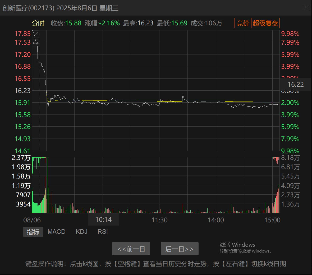 今天的行情与8月6日的行情高度相似,集合竞价高开低走,股价在水下横盘一天。